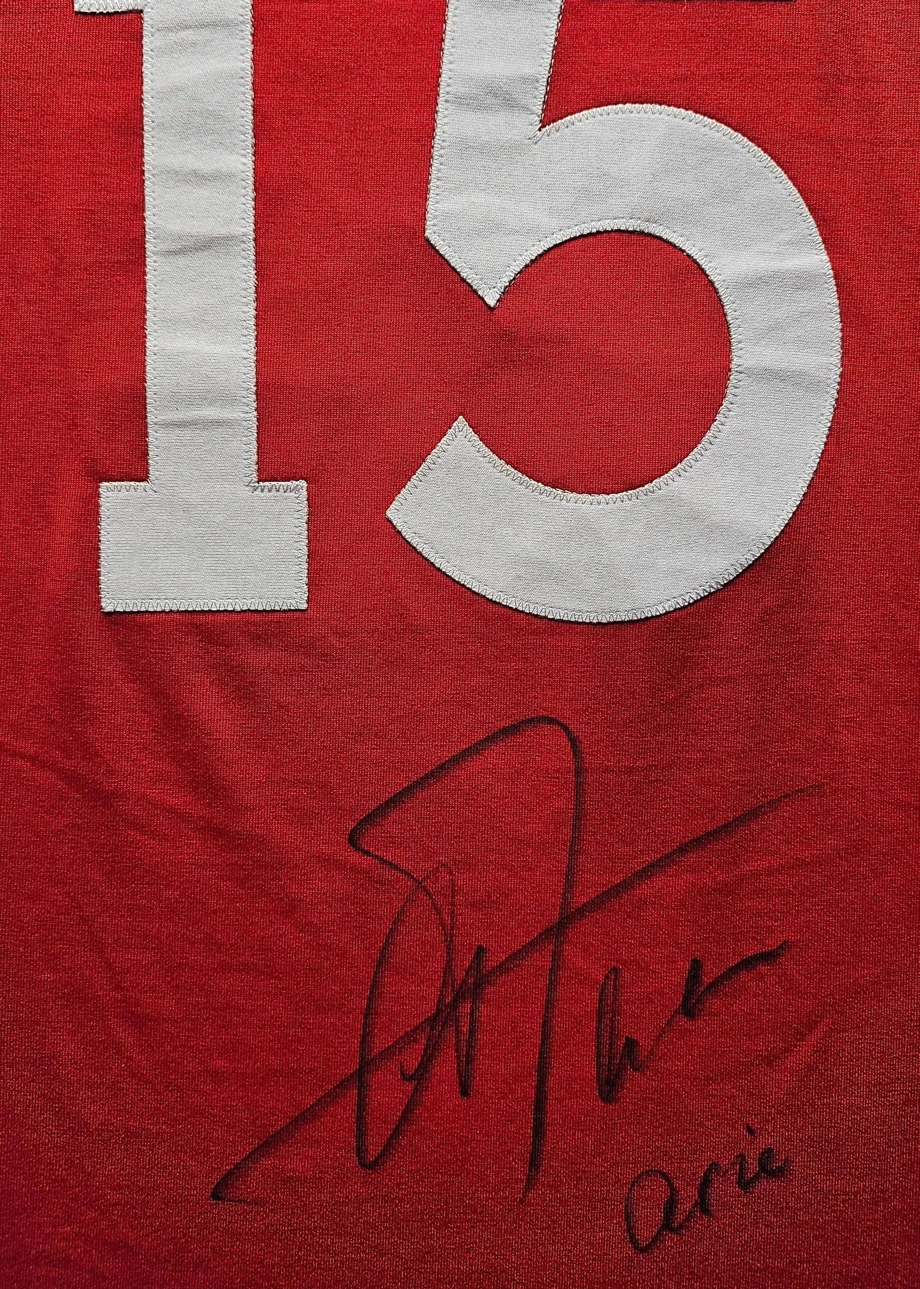 This shirt was signed by Arie Haan on 13 August 2025 in Vianen, The Netherlands during an official Numero 14 signing session. The signing was witnessed and documented with exact photo proof showing Haan signing this specific shirt, providing comprehensive authentication for collectors. Numero 14's certificate of authenticity accompanies the shirt, with certification number 4 linking the item to the verified signing event.