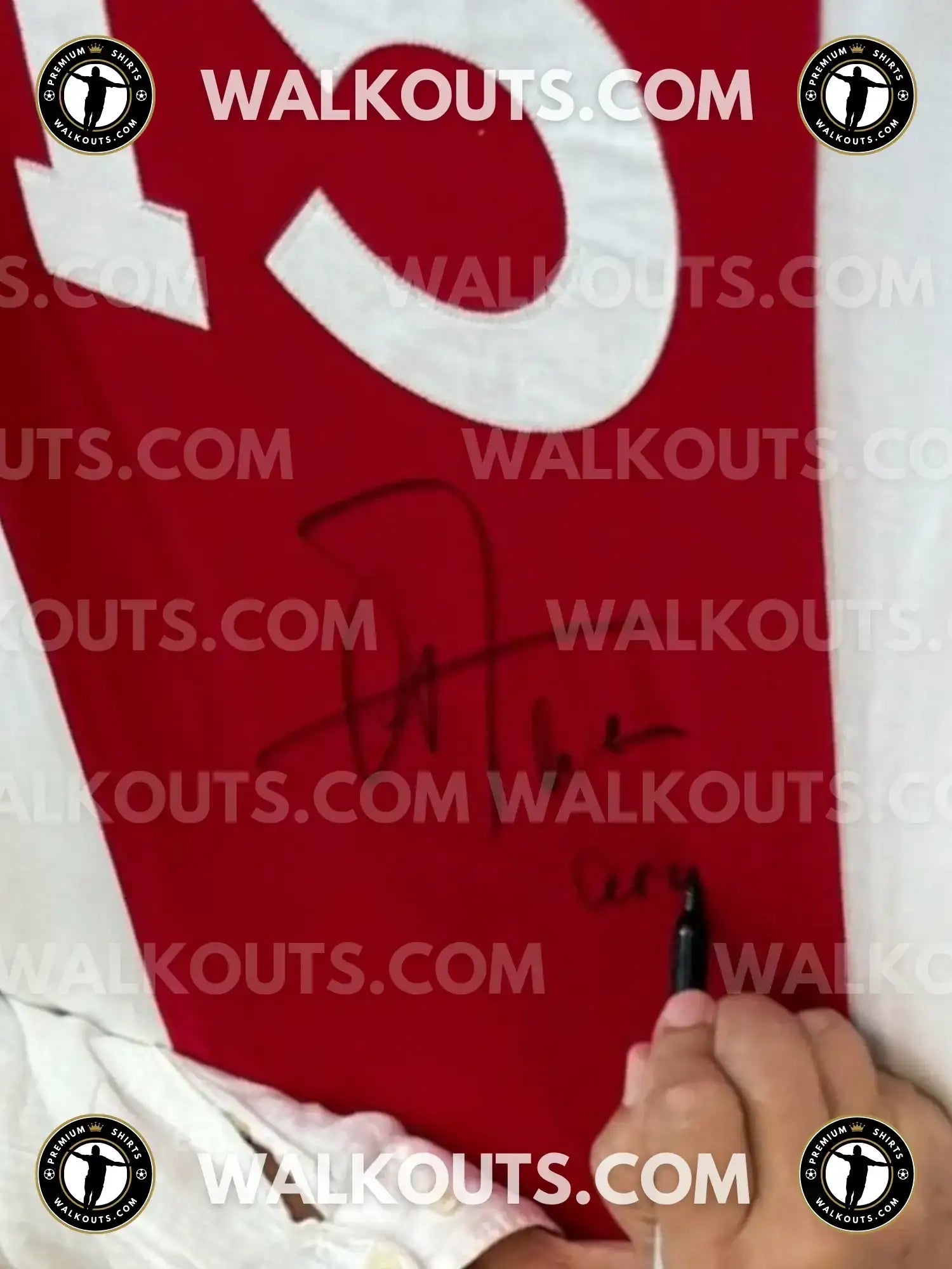 Your purchase includes the vintage signed football shirt with Numero 14 certificate of authenticity and exact photo proof from the witnessed signing session. The certification number 4 provides permanent verification of the signing event, while the photo documentation captures the moment Haan signed this specific shirt. The item arrives carefully packaged to protect the signature and fabric during transit.