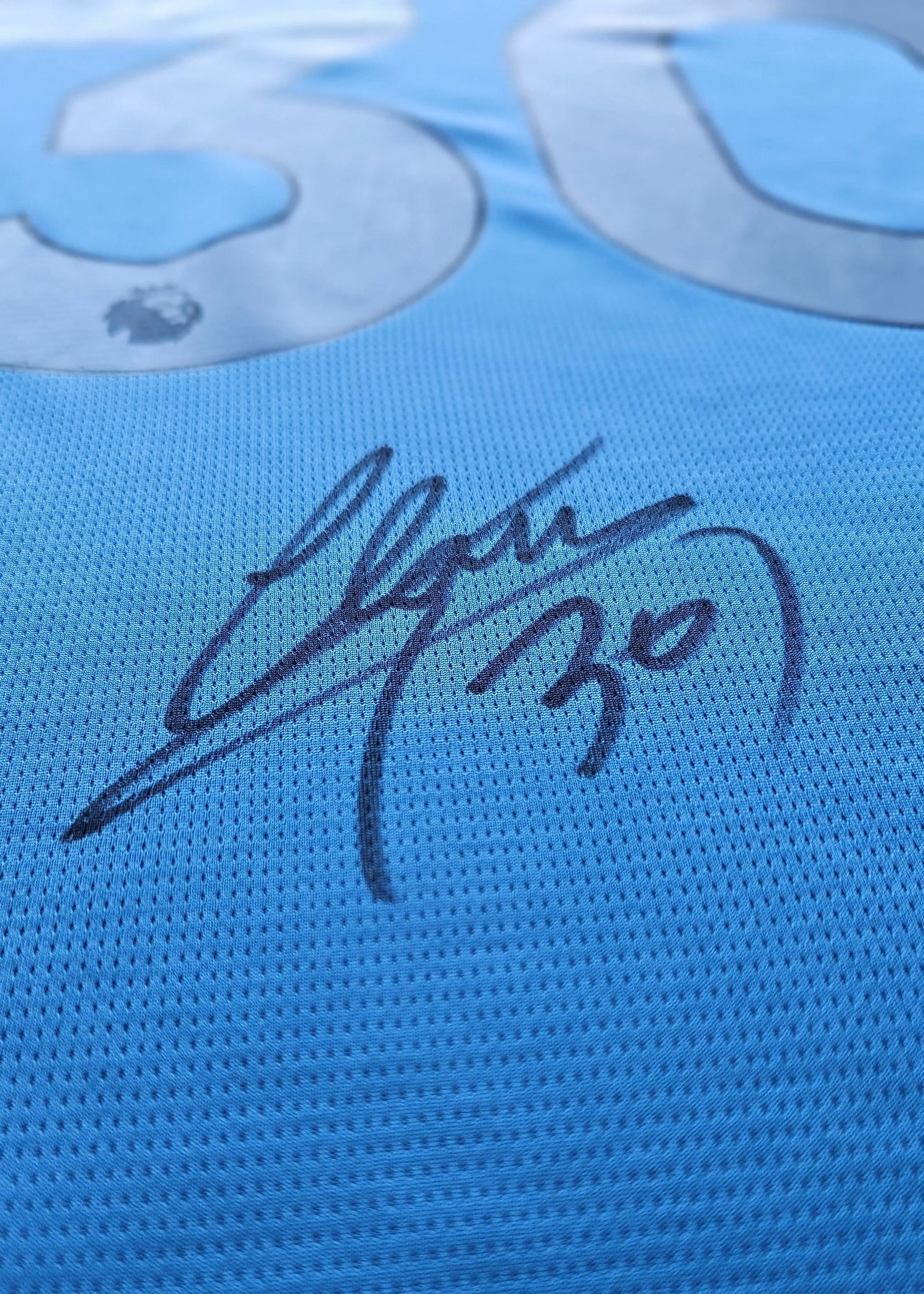Argentine players have a rich history in the Premier League, and Echeverri joins that tradition as he develops his game in English football. The number 30 shirt indicates his position within the squad structure during the 2024-25 season, and this signed piece connects directly to that specific campaign. For collectors who focus on Argentine talent, Premier League memorabilia, or Manchester City's squad development, this shirt offers multiple collecting angles.