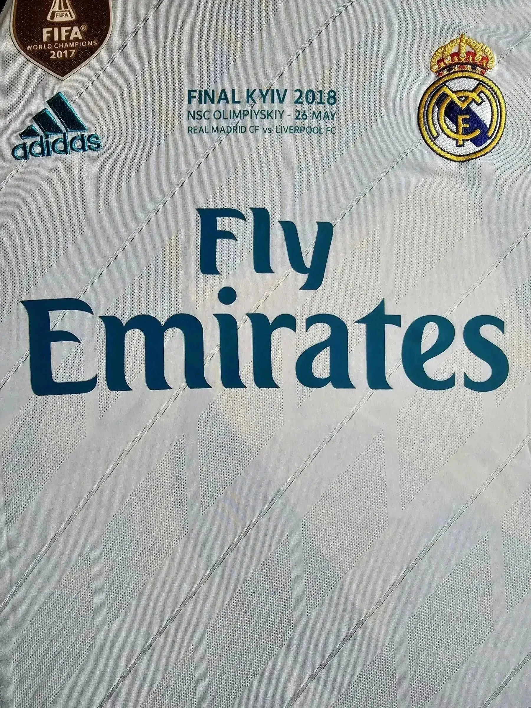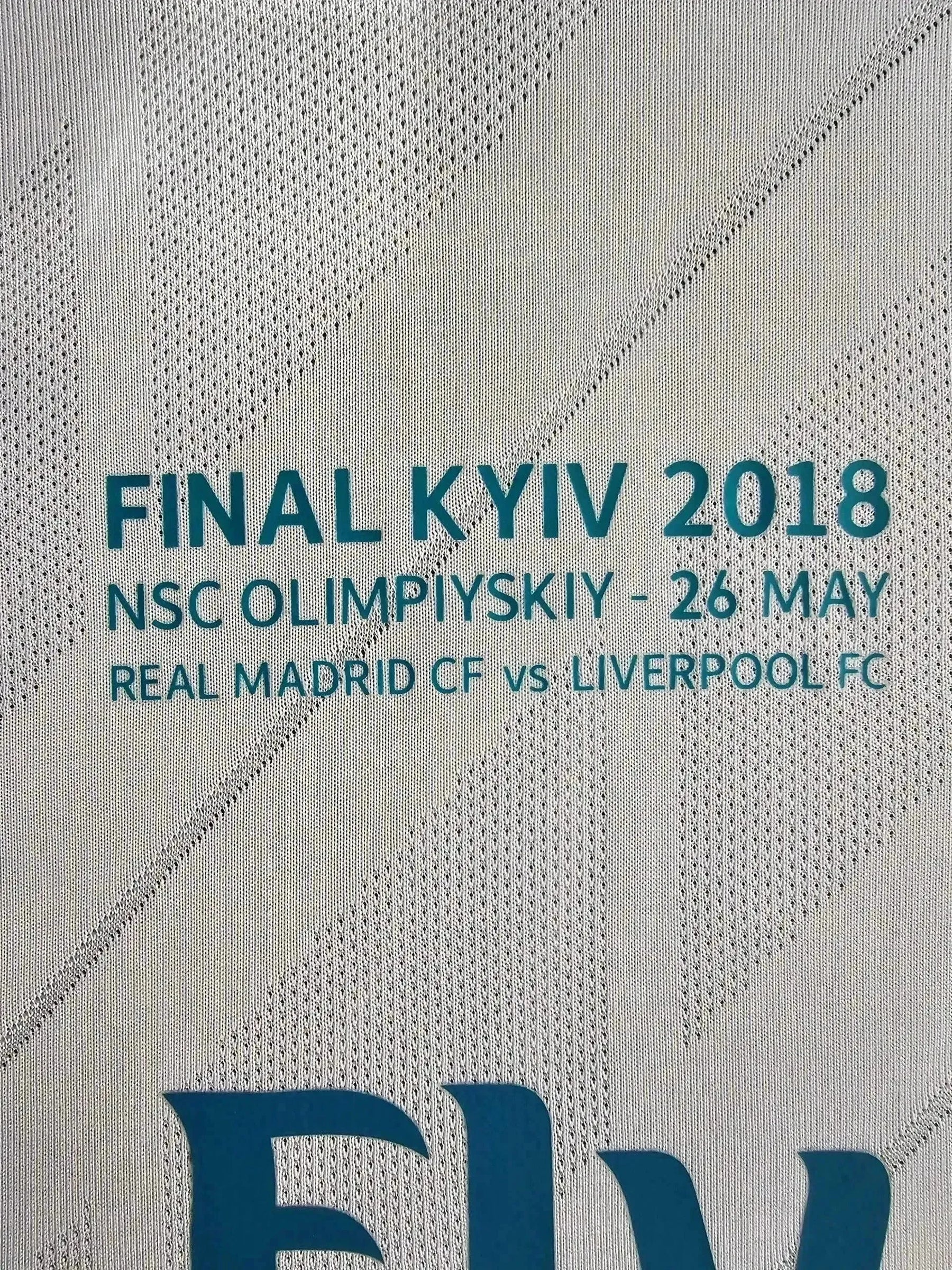 The 2017-18 season saw Real Madrid win the Champions League for the third consecutive year, defeating Liverpool 3-1 in the final in Kyiv. Cristiano Ronaldo scored 15 goals in the Champions League, including a stunning bicycle kick against Juventus. This was Ronaldo's final season at Real Madrid before his move to Juventus. This shirt celebrates Ronaldo's final Champions League triumph with Real Madrid.