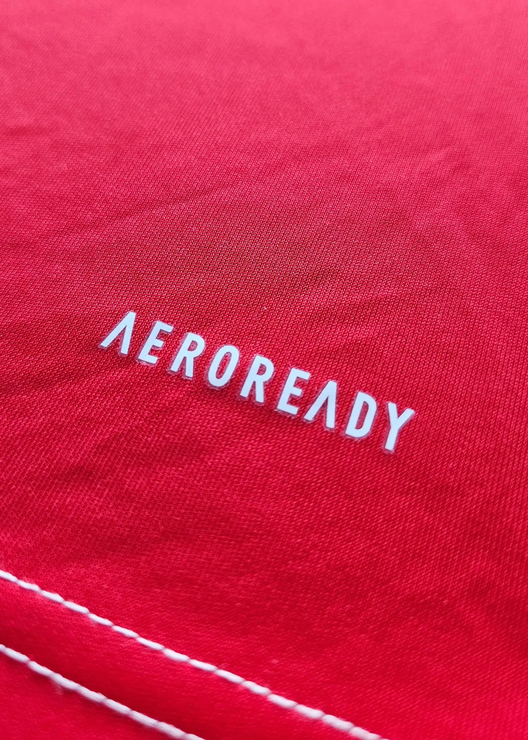 Size: M - Color: White,Red - Fabric: Polyester - Sleeve Length: Short - Neckline: Crew - Condition: Excellent (EX)