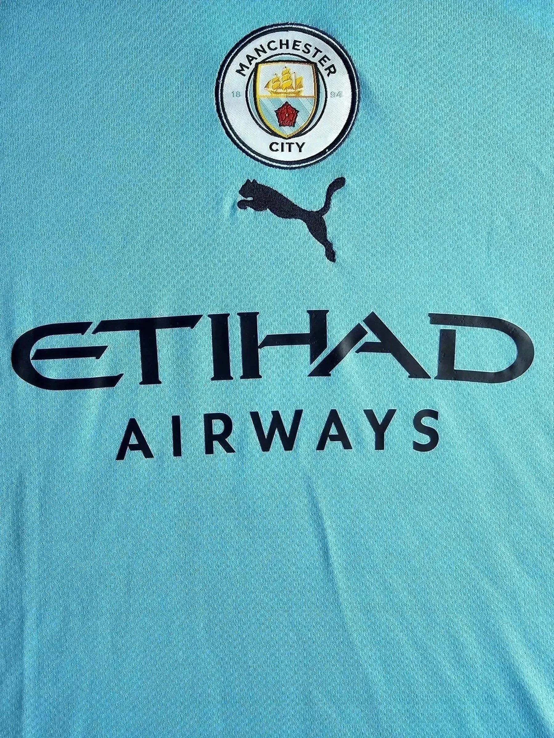 The 2022-23 season saw Manchester City win the treble, defeating Inter Milan 1-0 in the Champions League final. Erling Haaland scored 52 goals in all competitions, breaking the Premier League single-season record with 36 goals. City won the Premier League, FA Cup, and Champions League in one of the greatest seasons in club history. This shirt celebrates Haaland's record-breaking treble season.