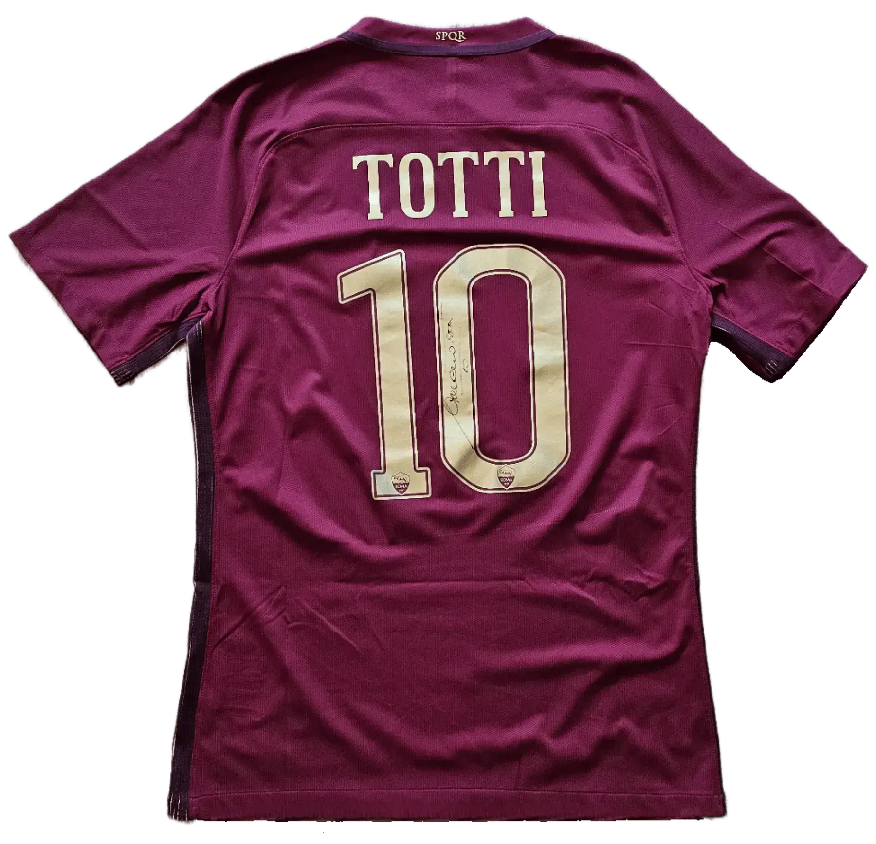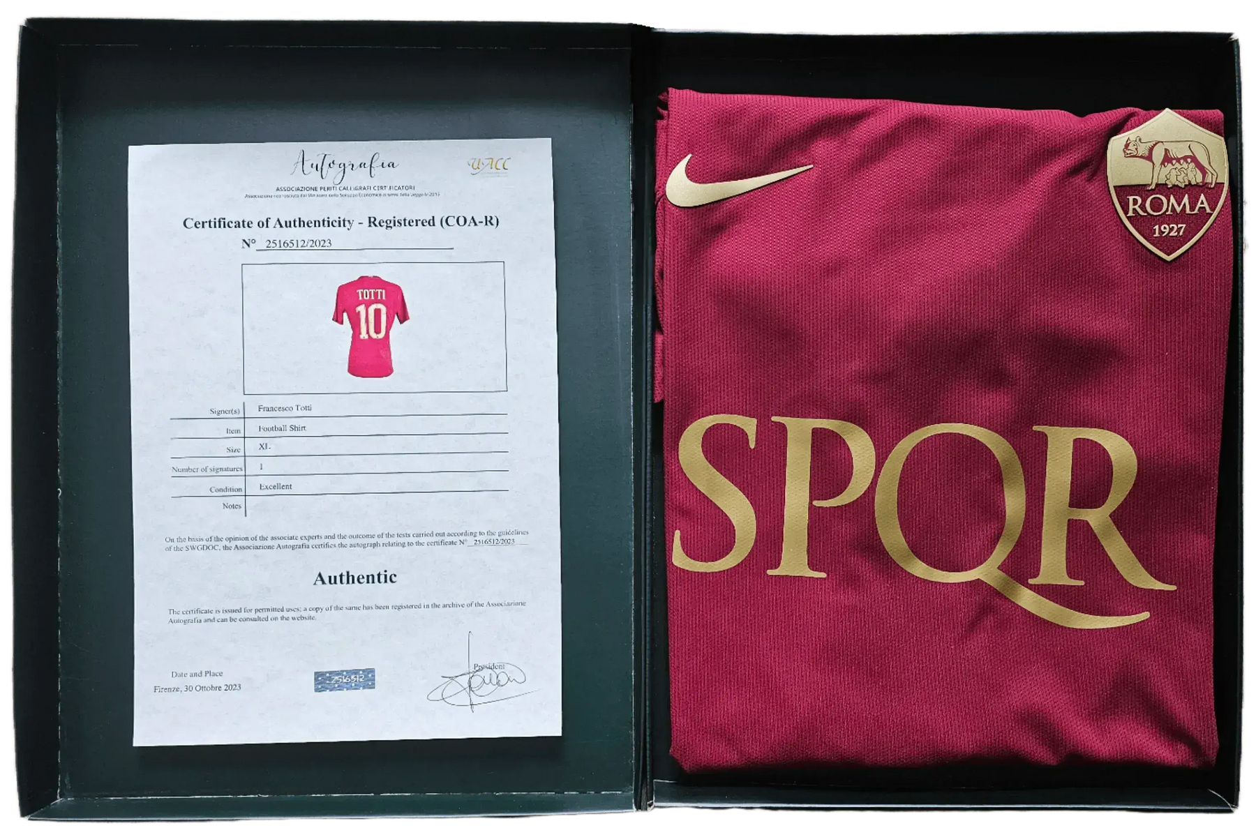This shirt holds particular significance as a match-issued shirt from Totti's final season and one of only two SPQR Derby shirts ever made. The combination of Totti's legendary status, the unique SPQR design created exclusively for the Derby della Capitale, and the extreme rarity of only two shirts ever produced creates exceptional collectible value. As one of the rarest Totti shirts in existence, authenticated match-issued memorabilia from this Derby creates compelling value for collectors of AS Roma and Italian football history.