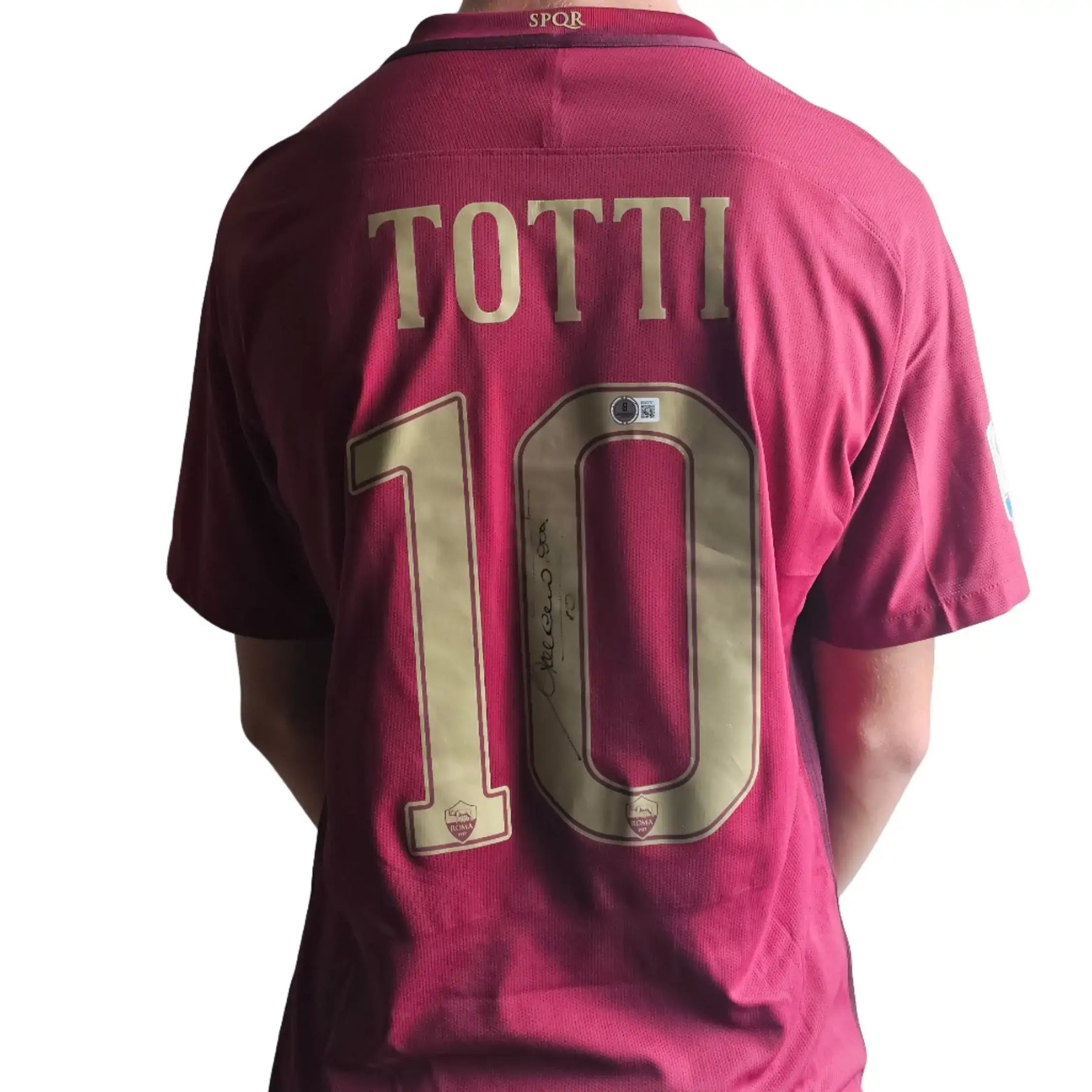 For display purposes, this signed match-issued football shirt can be professionally framed with UV-protective glazing to preserve both the fabric and autograph. The AS Roma 2016-17 SPQR Derby design with match-issued provenance creates a museum-quality display piece alongside the Beckett LOA and comprehensive signing proof documentation, celebrating one of football's greatest one-club legends.