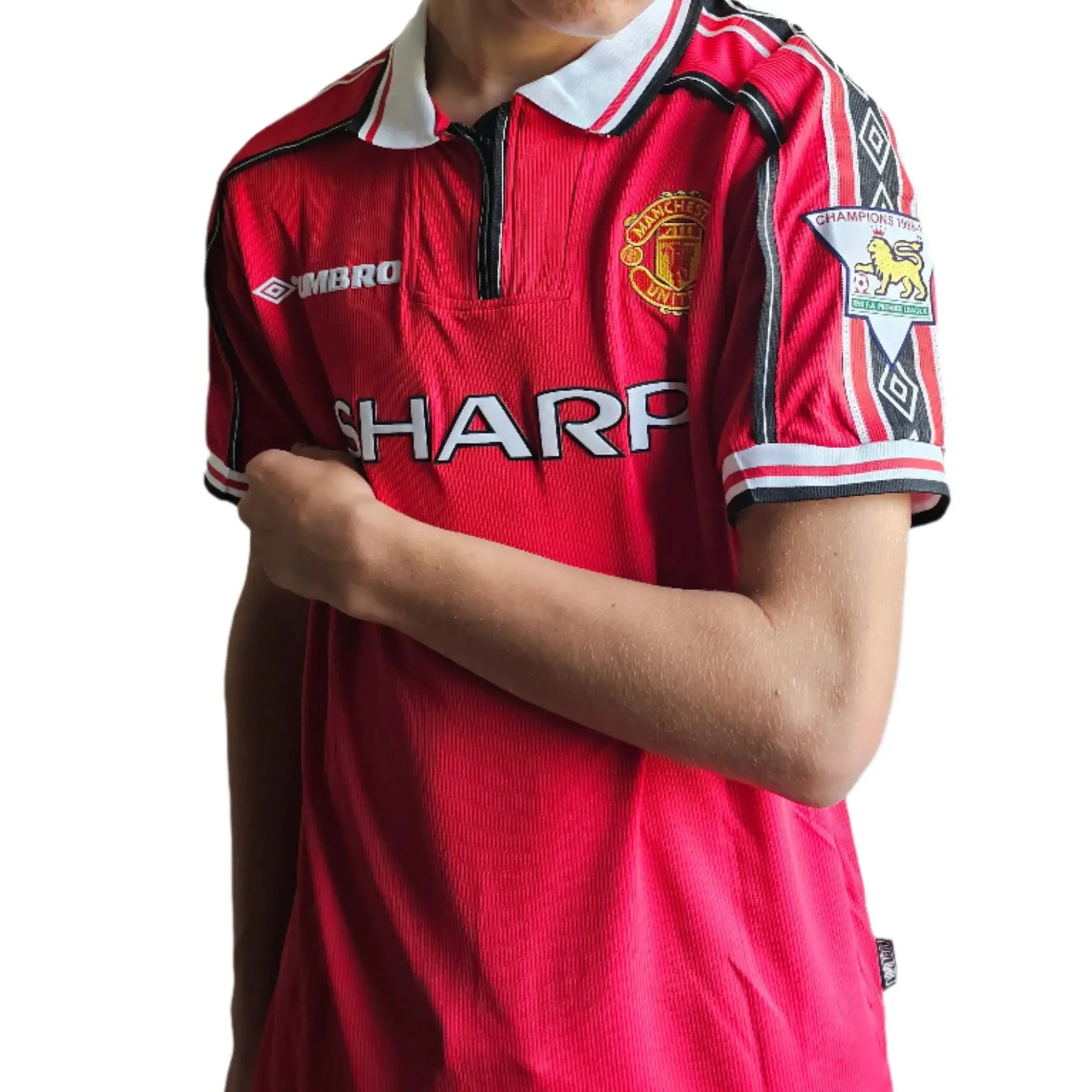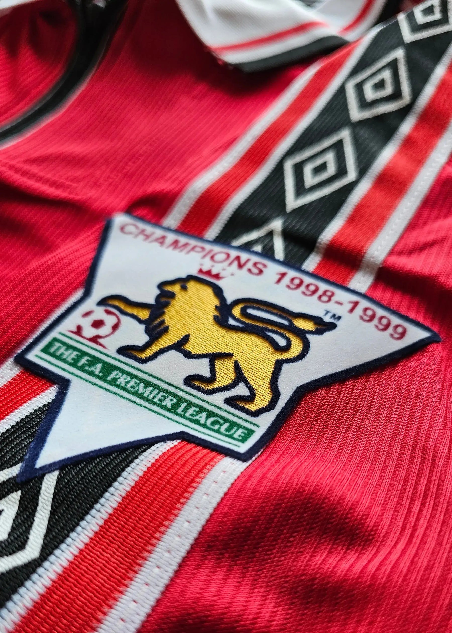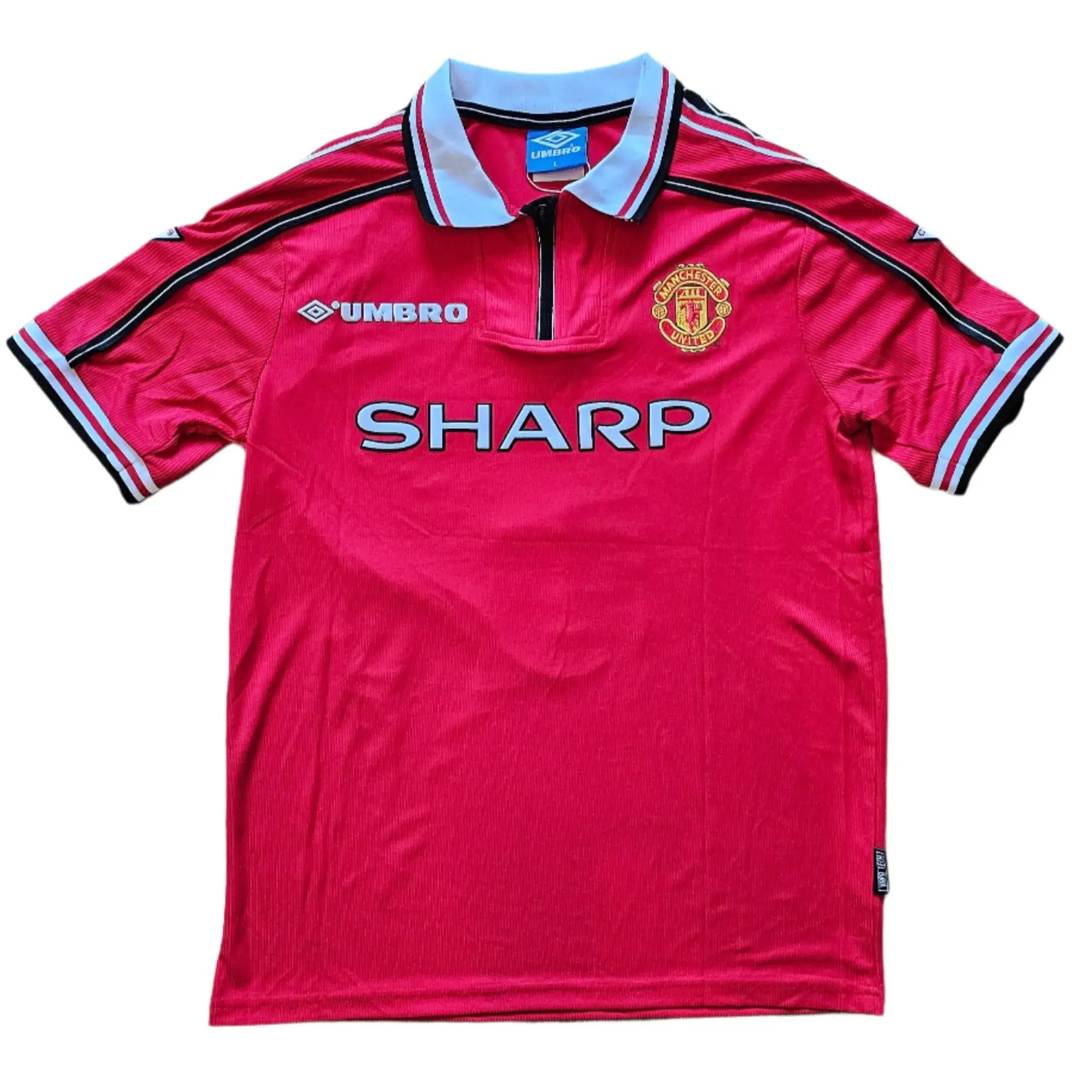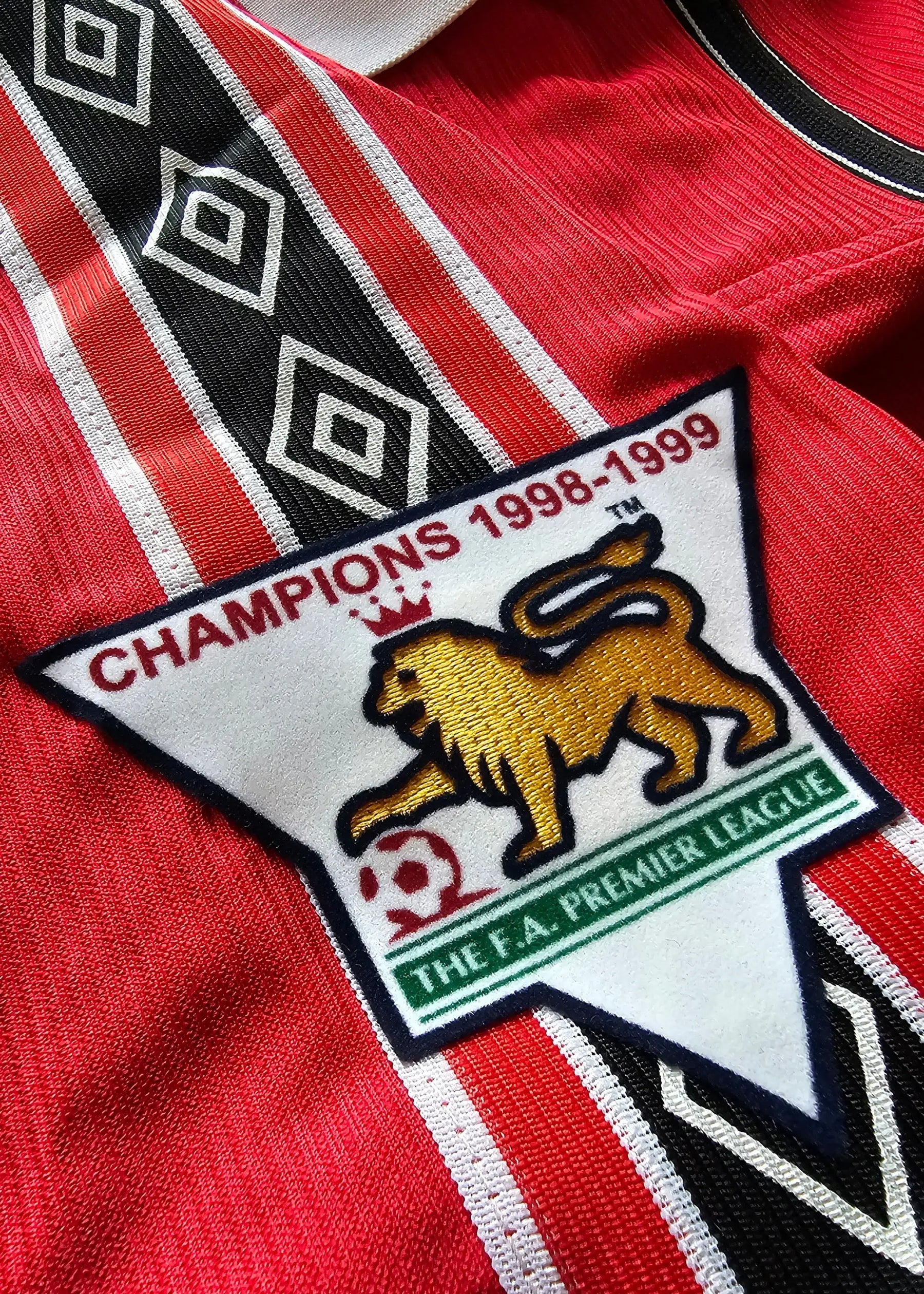 The 1998-99 season saw Manchester United achieve the impossible treble, winning the Premier League, FA Cup, and Champions League. Jaap Stam was a defensive rock throughout the campaign, forming a formidable partnership with Ronny Johnsen and helping United keep crucial clean sheets. The Champions League final on 26 May 1999 saw United defeat Bayern Munich 2-1 with two injury-time goals, completing one of football's greatest achievements. This 1998-99 shirt represents the Rots van Kampen (Rock of Kampen) at the peak of his powers during football's most legendary season.