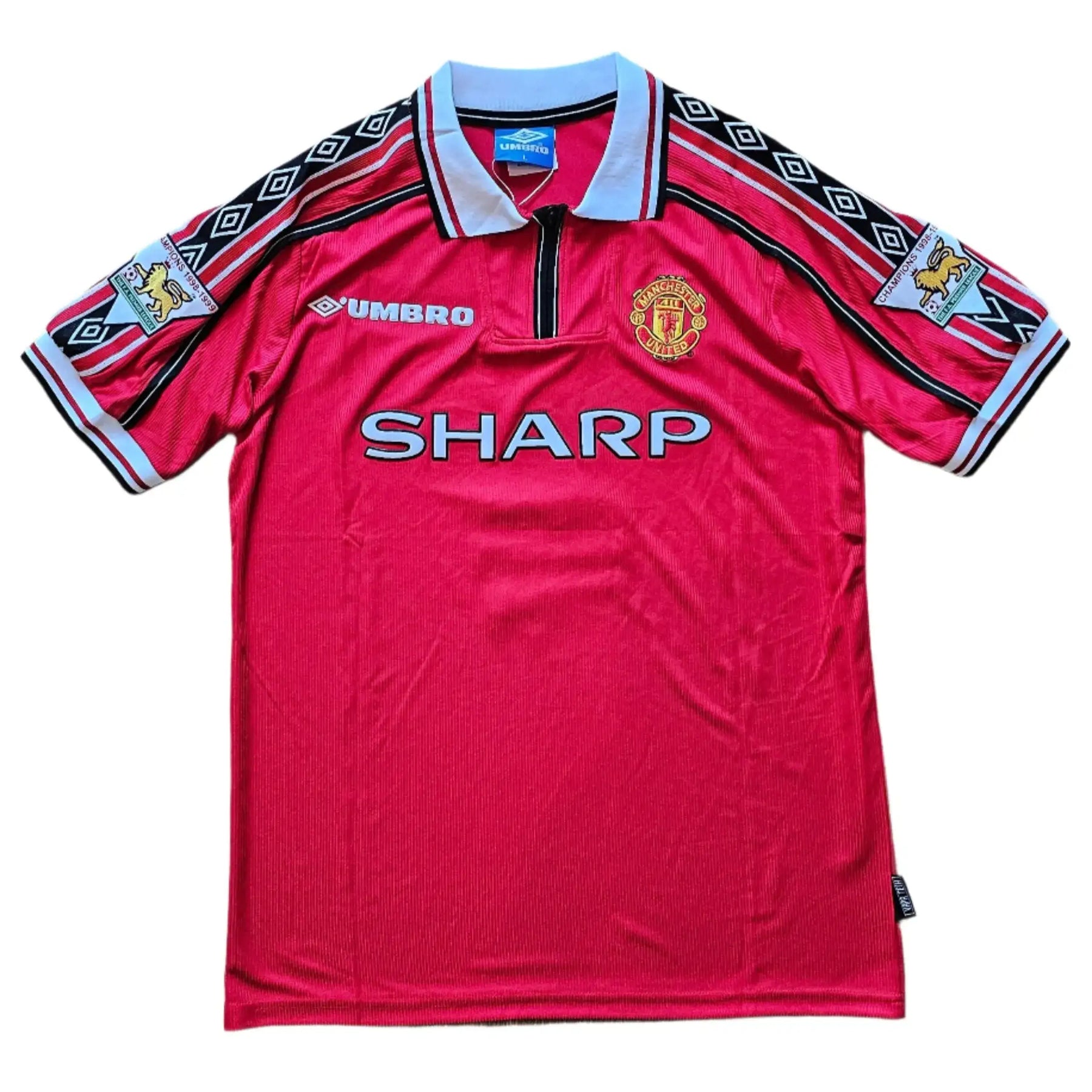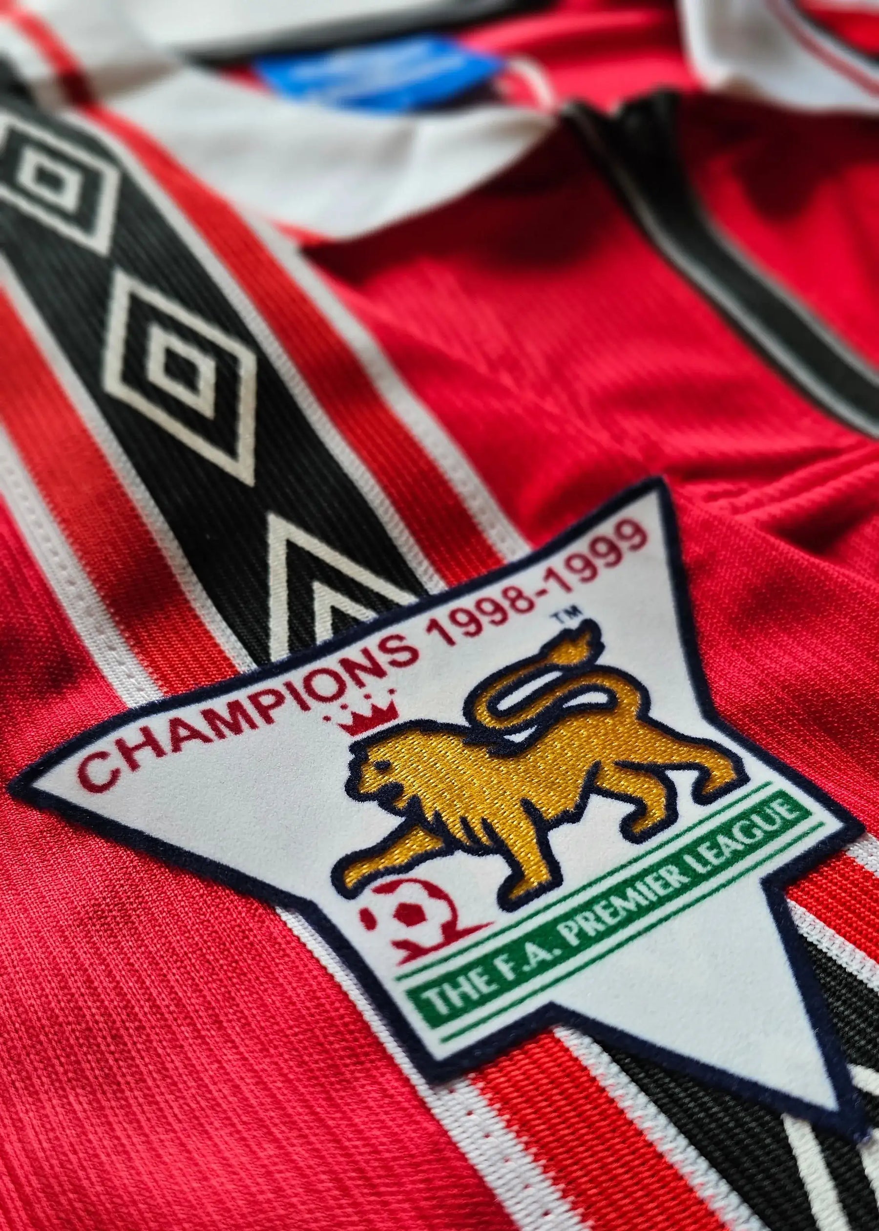 The 1998-99 season saw Manchester United achieve the impossible treble, winning the Premier League, FA Cup, and Champions League. Jaap Stam was a defensive rock throughout the campaign, forming a formidable partnership with Ronny Johnsen and helping United keep crucial clean sheets. The Champions League final on 26 May 1999 saw United defeat Bayern Munich 2-1 with two injury-time goals, completing one of football's greatest achievements. This 1998-99 shirt represents the Rots van Kampen (Rock of Kampen) at the peak of his powers during football's most legendary season.