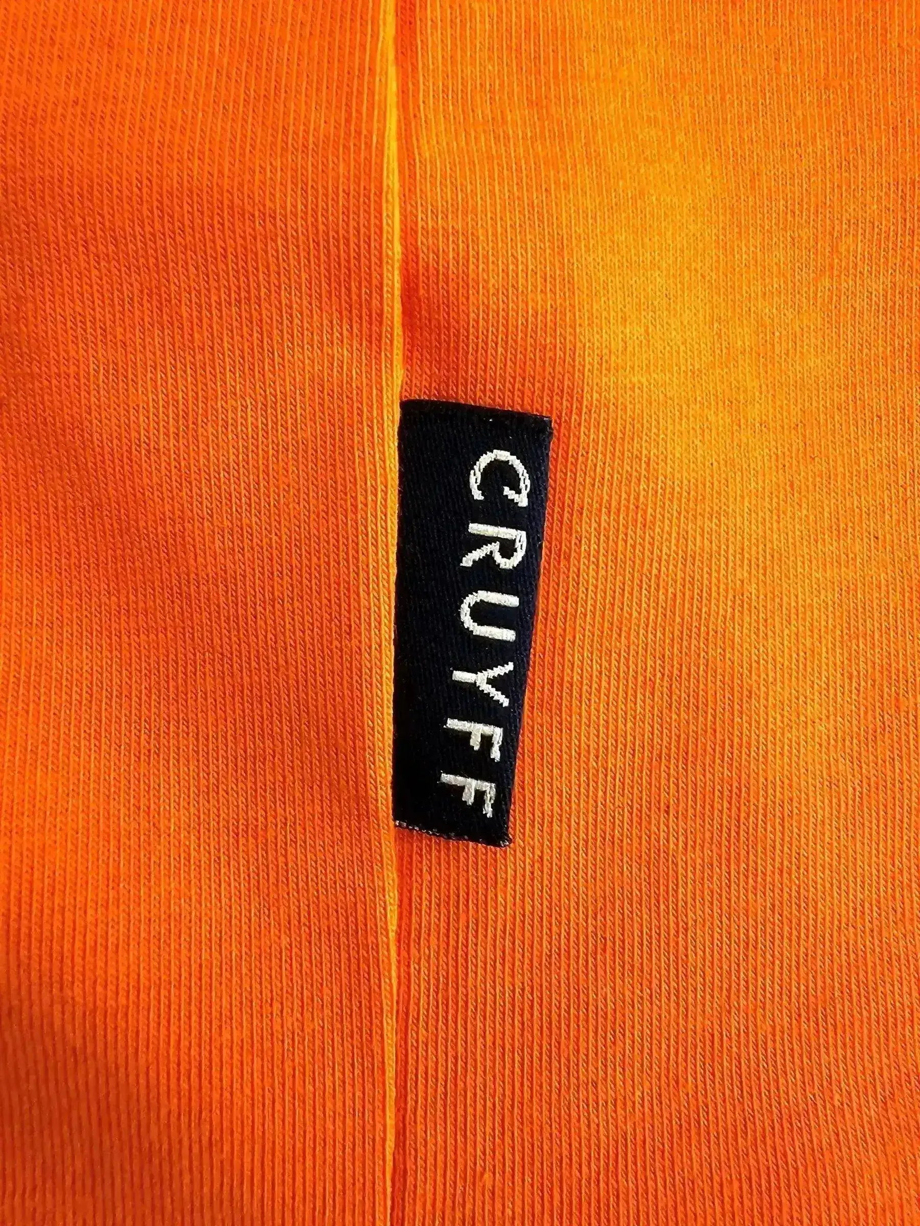 Johan Cruyff is one of the greatest players in football history. Born on 25 April 1947 in Amsterdam, Netherlands, Cruyff won three European Cups with Ajax, the Ballon d'Or three times, and revolutionized football with Total Football. He is known for his vision, technical ability, and football intelligence. The 1974 World Cup was Cruyff's greatest international achievement. This shirt celebrates Cruyff at the 1974 World Cup.