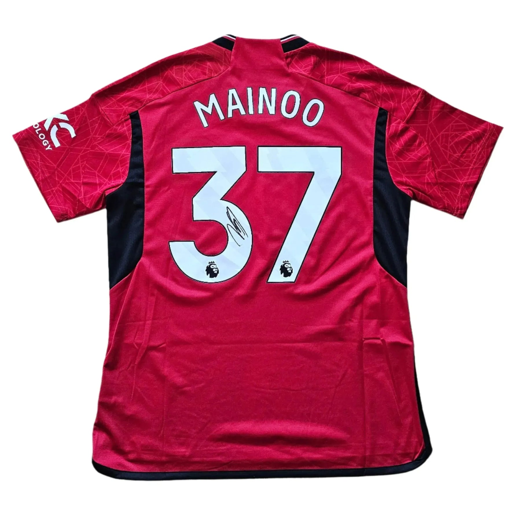 Player: Kobbie Mainoo - Team: Manchester United F.C. - Country: England - Competition: Premier League - Season: 2023-2024 - Shirt: Fanshop Authentic - COA: Beckett - Proof: Photo Proof; Certificate of Authenticity (COA); Letter of Authentication (LOA)