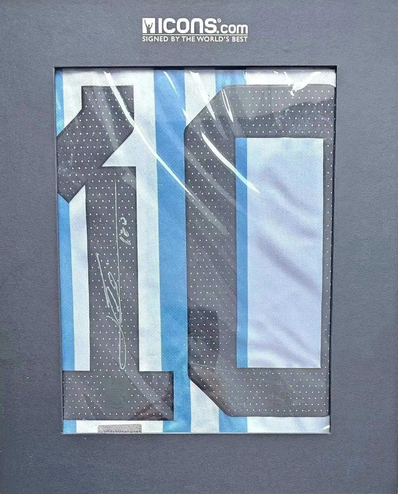 Accompanied by a premium ICONS Certificate of Authenticity, you can be assured of the signature's legitimacy. This exclusive item is presented in a luxury ICONS box, a presentation befitting the rarity and value of such a collectible, making it a perfect addition to any high-end football memorabilia collection.