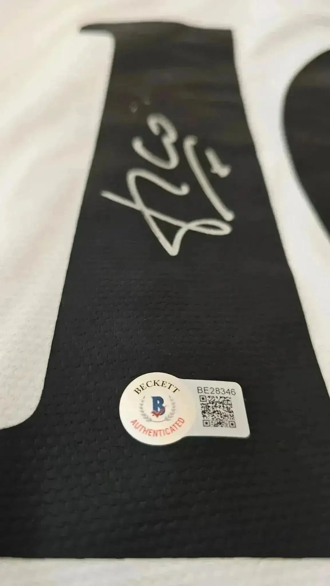 The Beckett certificate of authenticity with certification number BE28346 provides premium third-party verification for collectors. The Beckett authentication confirms the signature authenticity and provides online verification at beckett-authentication.com. The Walkouts signing proof with signing photo creates comprehensive authentication.