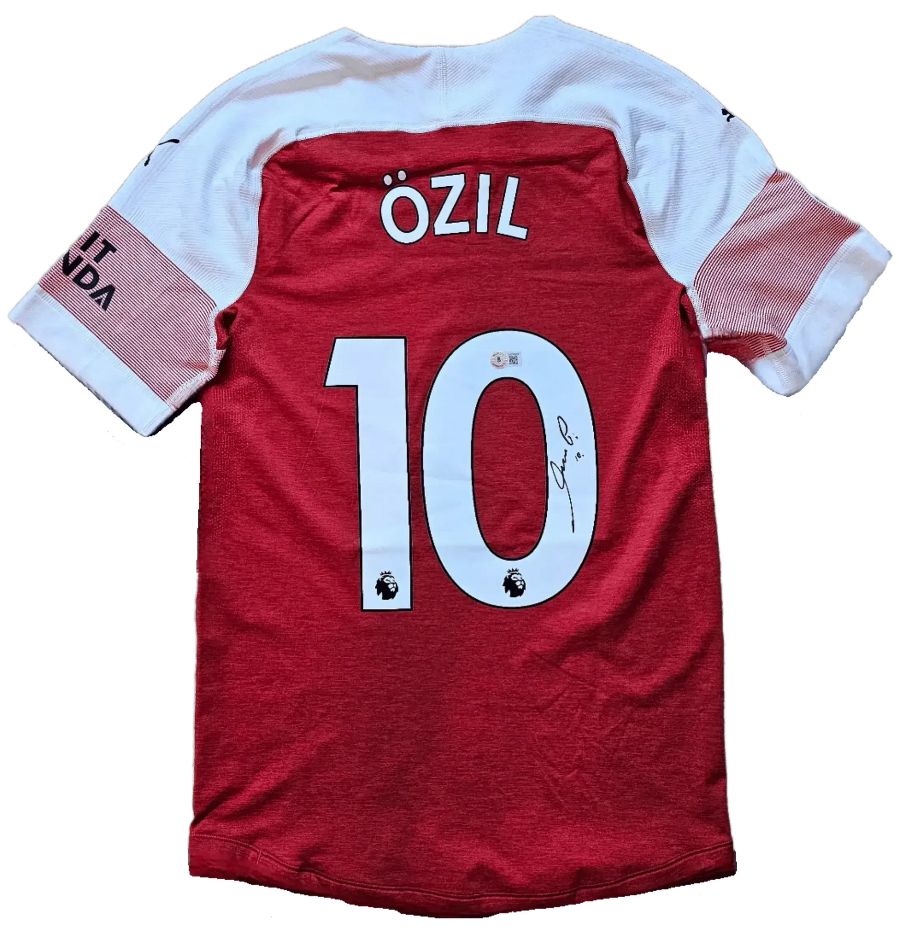 Player: Mesut Özil - Team: Arsenal F.C. - Competition: Premier League - Season: 2018-2019 - Shirt: Match Worn - COA: Beckett - Proof: Certificate of Authenticity (COA); Photo Match; Graded; Letter of Authentication (LOA)