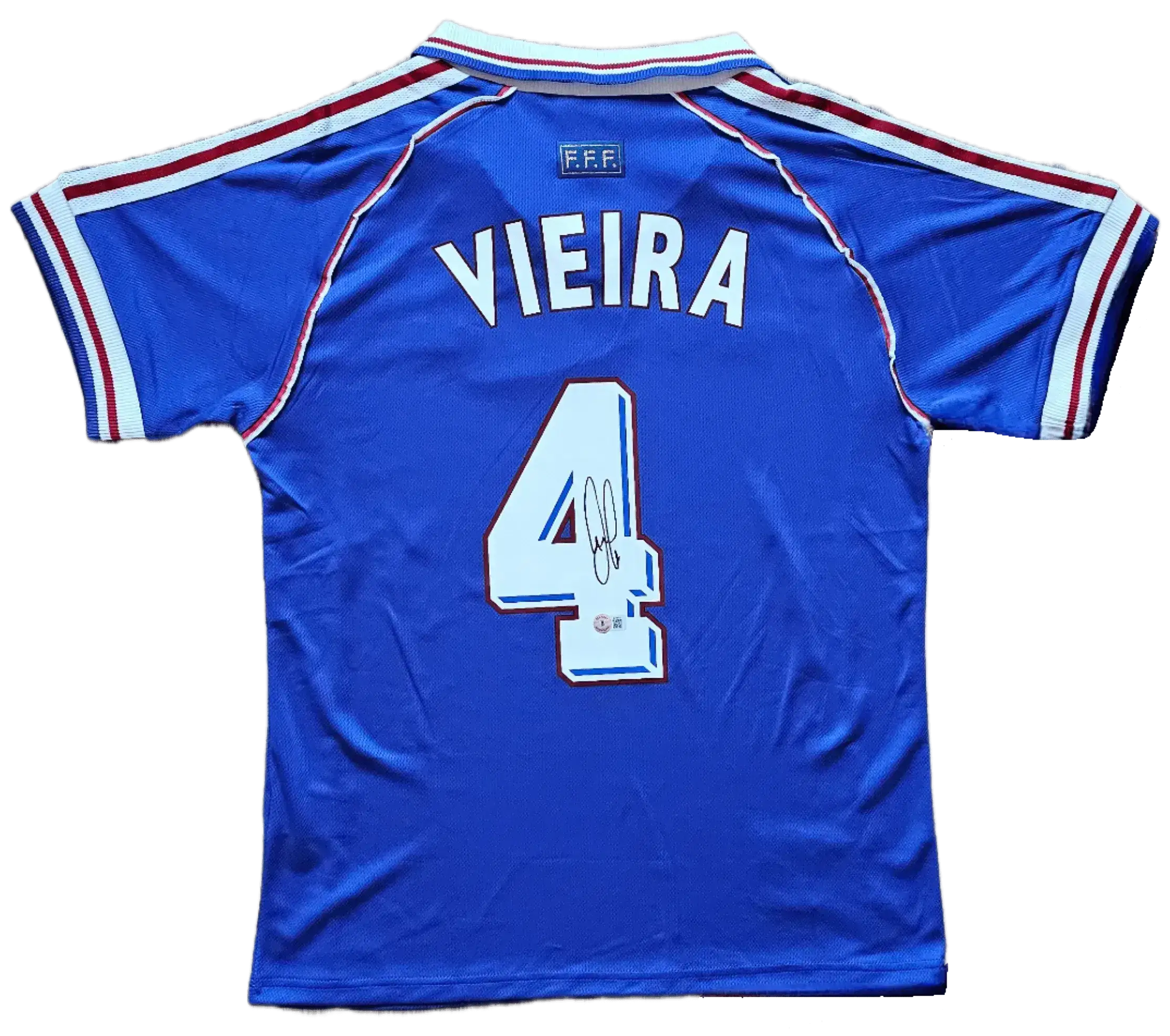 This shirt holds particular significance as a shirt celebrating France's first World Cup triumph in 1998. The combination of Vieira's legendary status, France's historic victory on home soil, and the iconic 1998 design creates exceptional collectible value. As a shirt commemorating one of the greatest moments in French football history, this piece creates compelling value for collectors of France and World Cup history.