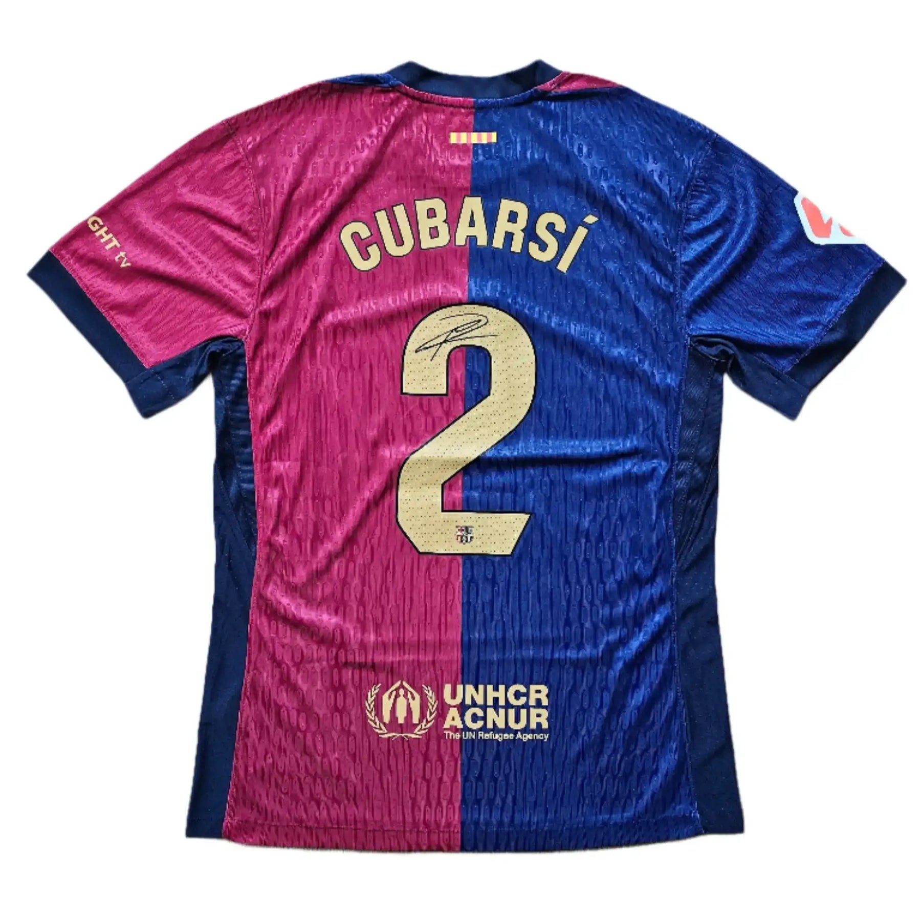 This shirt holds particular significance as a special edition Cactus Jack collaboration from Cubarsí's treble-winning season. The unique design represents Barcelona's partnership with Travis Scott's brand, creating a distinctive collectible that combines football heritage with contemporary streetwear culture. Cubarsí's rapid rise from La Masia academy to first-team regular, Champions League Player of the Match, and treble winner creates compelling context for authenticated memorabilia from this breakthrough period.