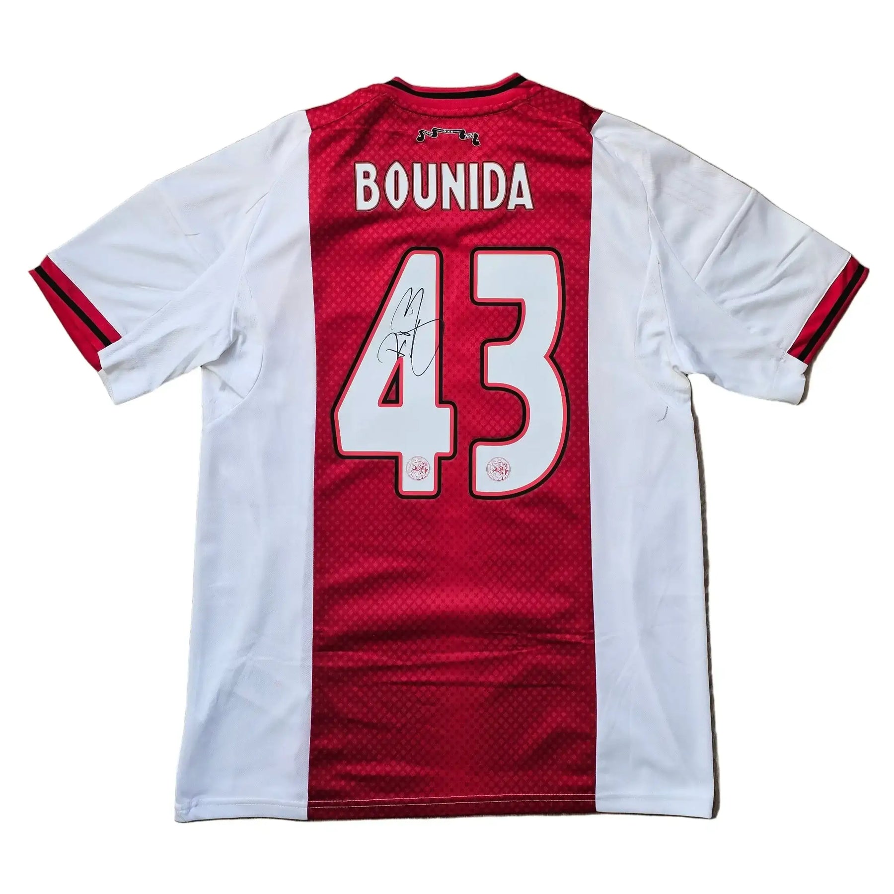 This signed football shirt captures Rayane Bounida during Ajax's 2025-26 Eredivisie season, representing a promising attacking talent developing at one of Europe's most storied clubs.