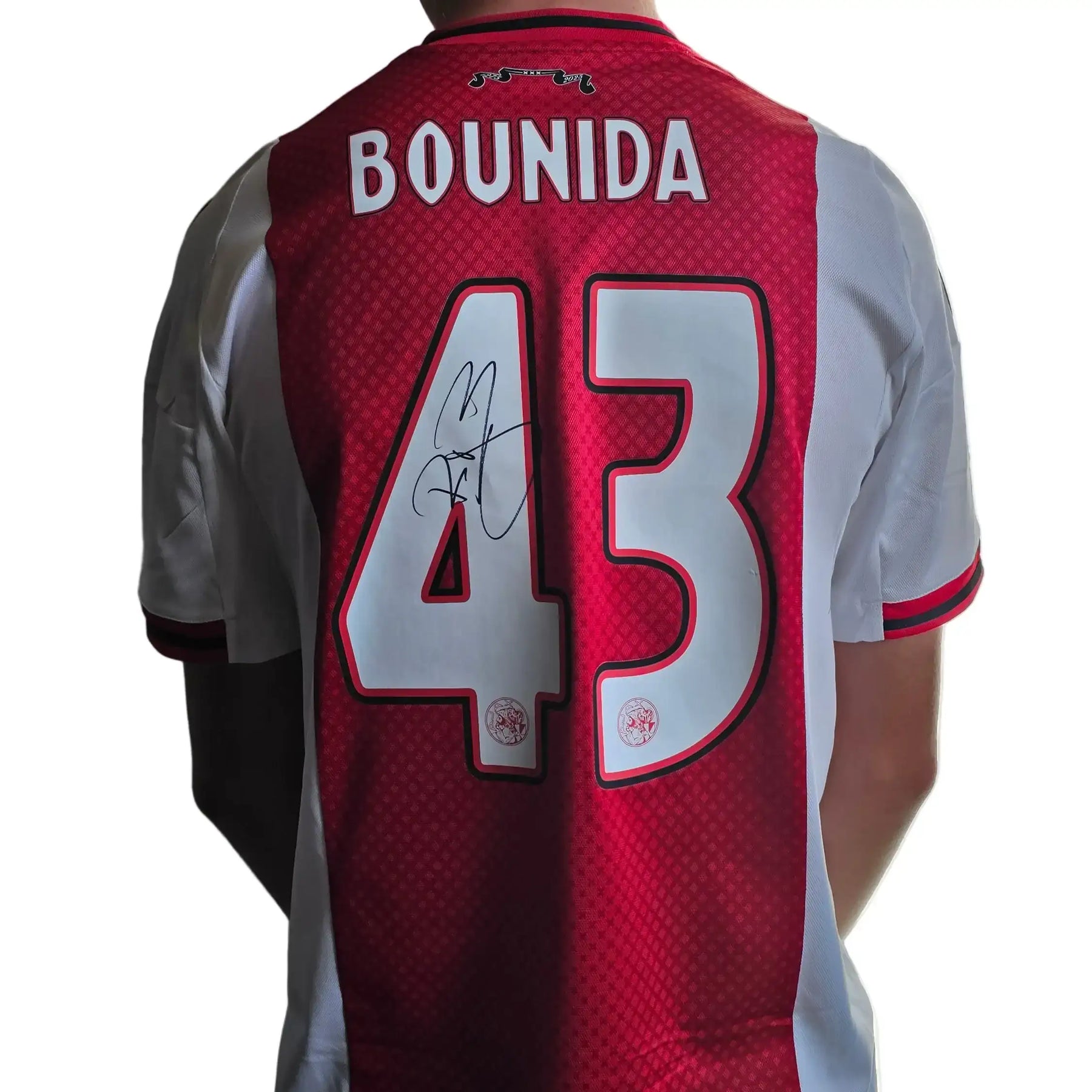 Player: Rayane Bounida - Team: AFC Ajax - Competition: Eredivisie - Season: 2025-2026 - Shirt: Fanshop Authentic - COA: Signed Kits - Proof: Exact Video Proof; Certificate of Authenticity (COA)
