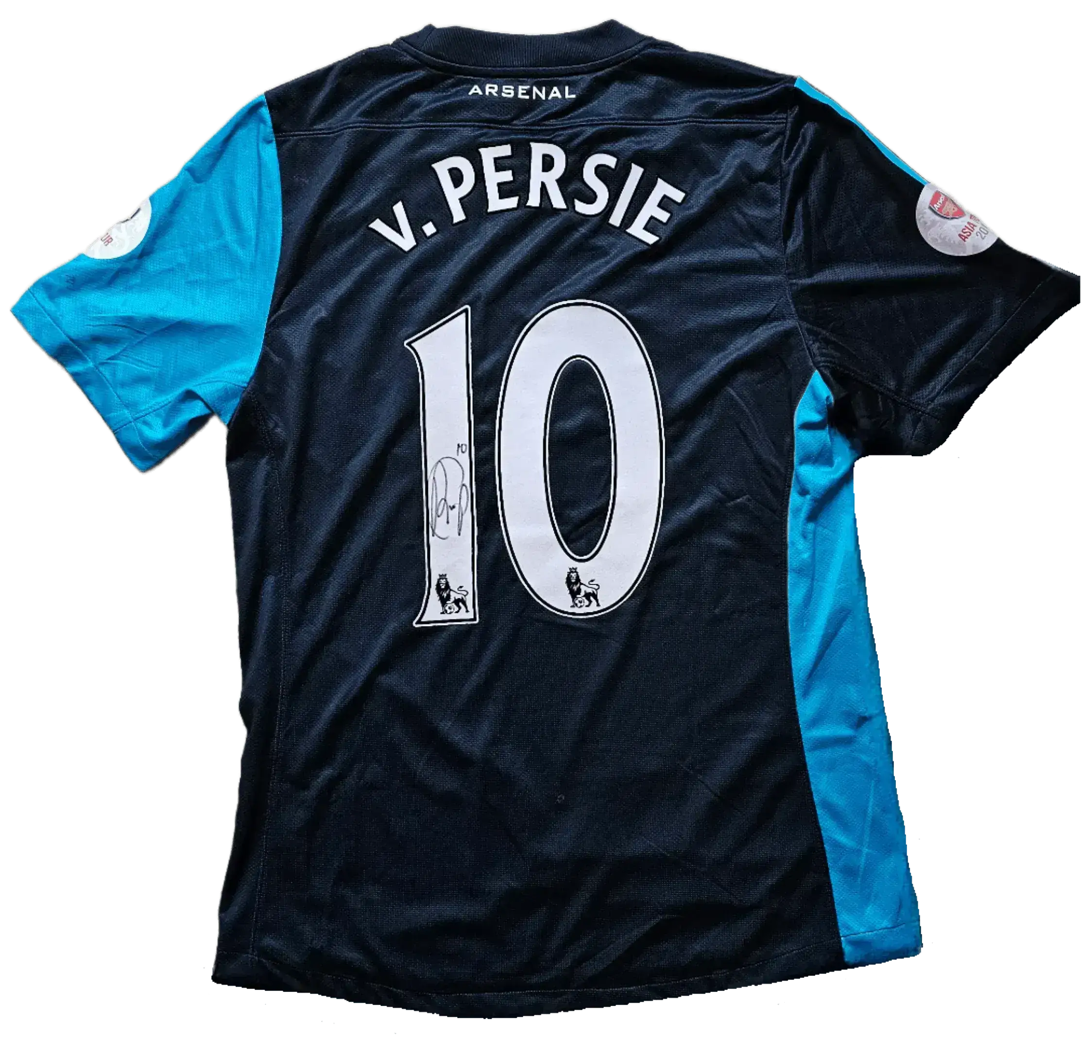 Player: Robin van Persie - Team: Arsenal F.C. - Competition: Premier League - Season: 2010-2011 - Shirt: Match Issued - COA: Beckett - Proof: Certificate of Authenticity (COA); Signing Session (Witnessed); Exact Photo Proof; Graded; Letter of Authentication (LOA)