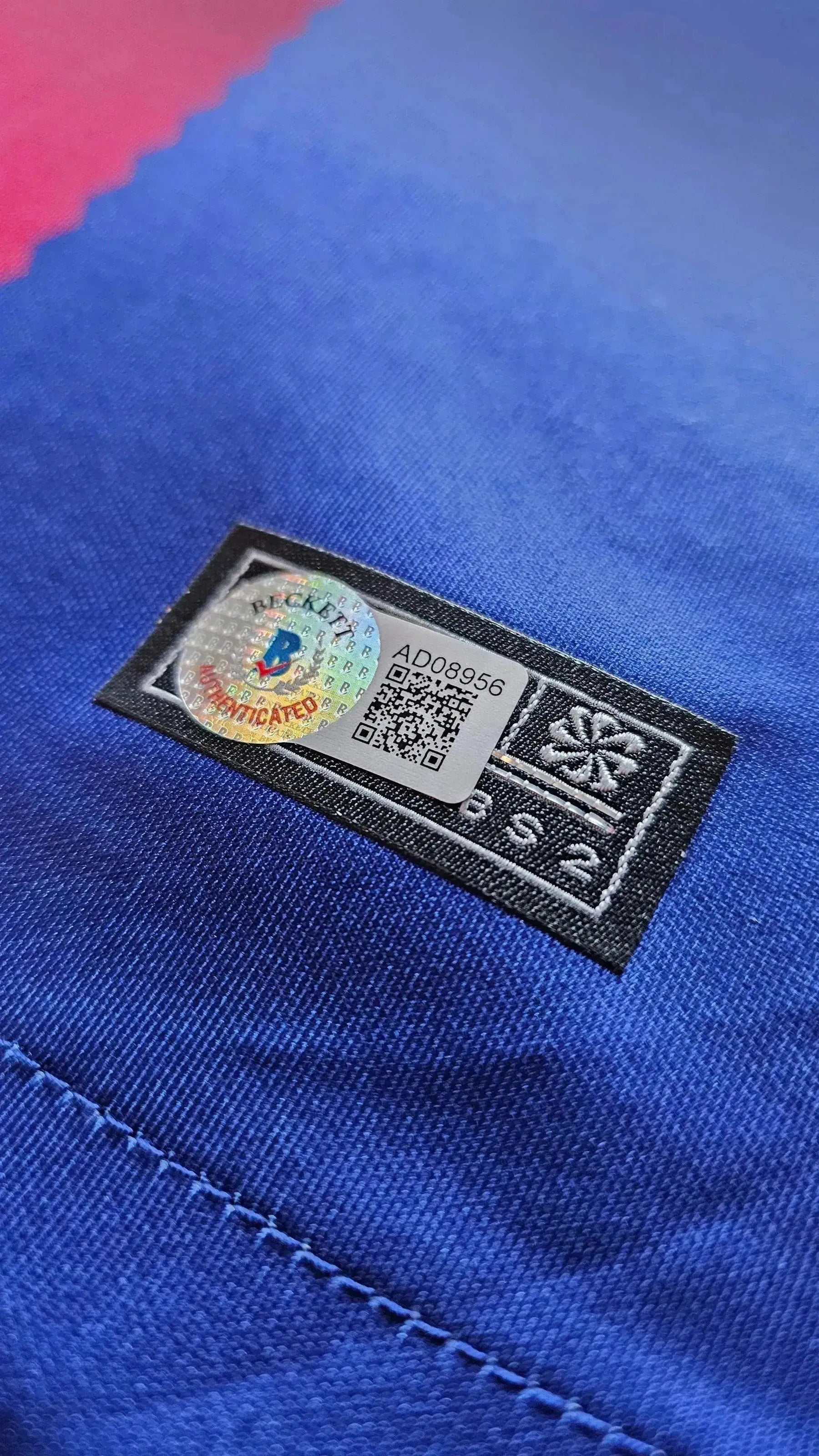 For display purposes, this signed football shirt can be professionally framed with UV-protective glazing to preserve both the fabric and autograph. The Barcelona design with Beckett-certified signature creates a premium display piece alongside the Beckett LOA and comprehensive signing proof documentation, celebrating Barcelona's defensive line.