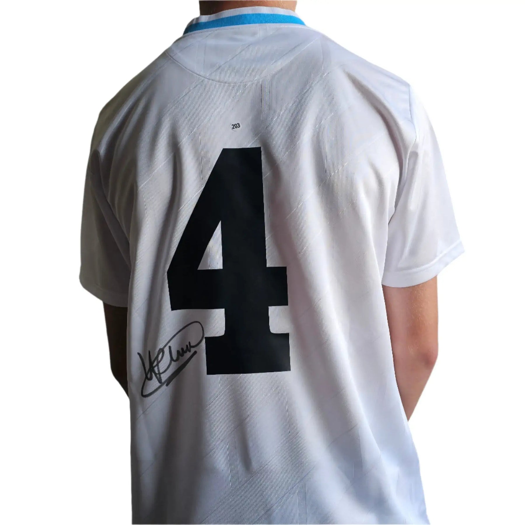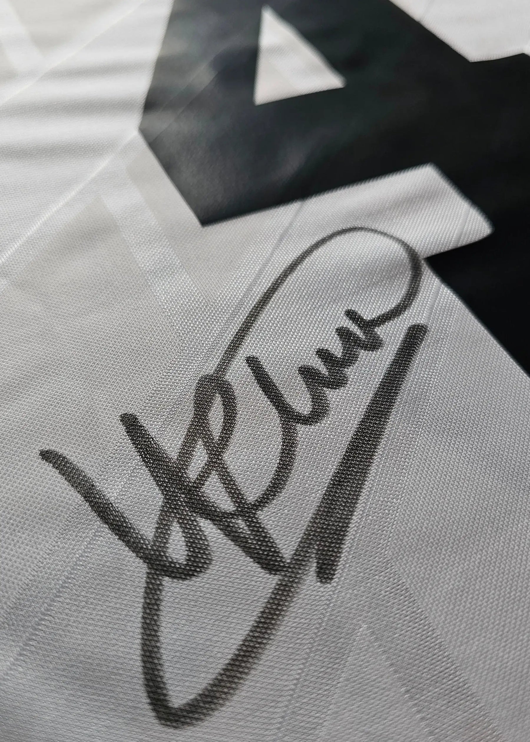 Your purchase includes the vintage signed football shirt with signatures on front and back, Numero 14 certificate of authenticity (numbered 203), signing photo, signature proof, and luxury gift box. The complete authentication package and official signing session provenance ensure this piece arrives ready for display as part of a curated collection of football history. The item arrives carefully packaged to protect the vintage fabric and signatures during transit.