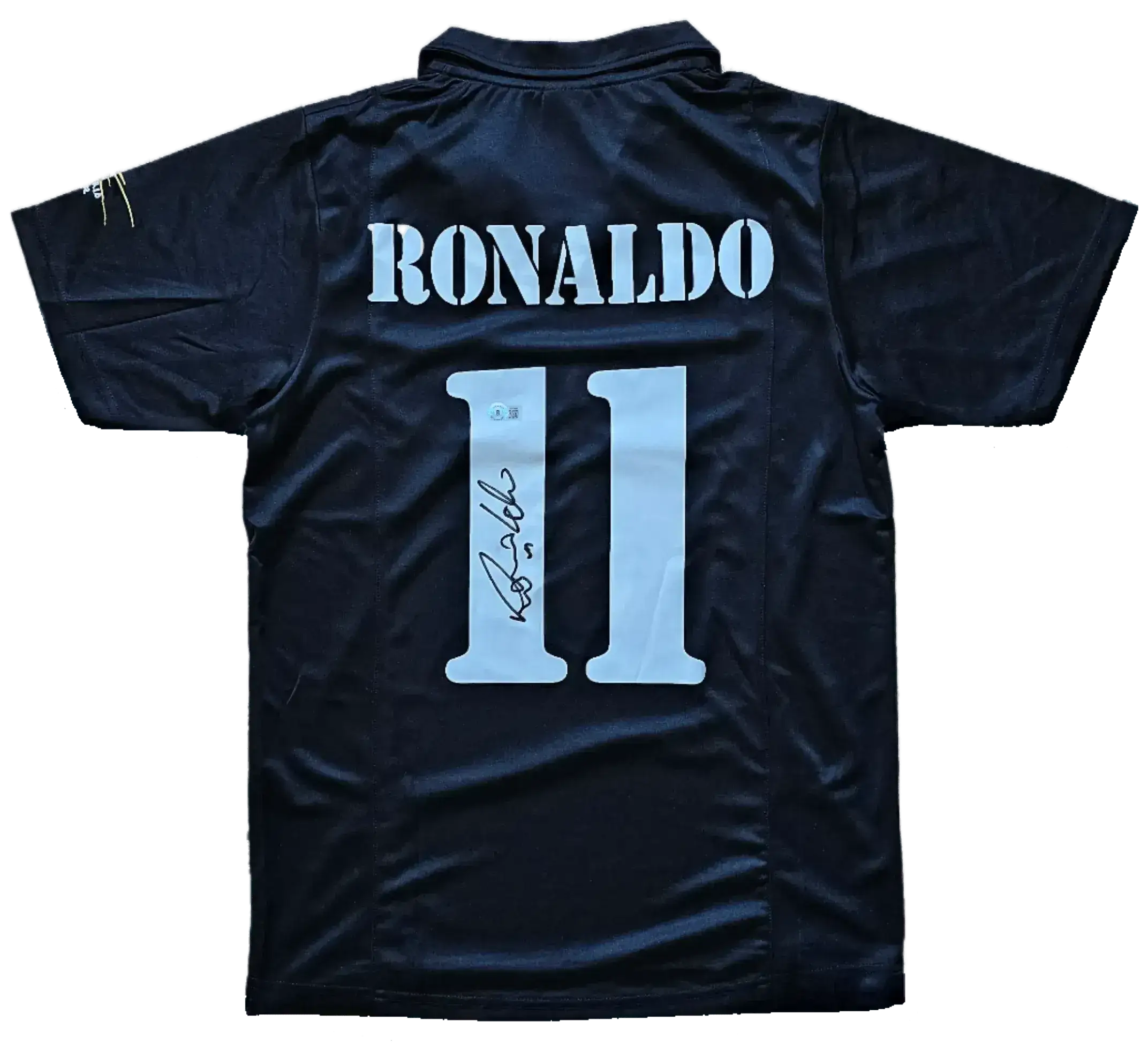 The authenticity of this signed shirt is undisputed, verified by the Beckett certification that accompanies it. Collectors and fans alike can rest assured that the Ronaldo signature embellished on the number 11 is genuine, a signature as bold and impactful as the man's presence on the field.
