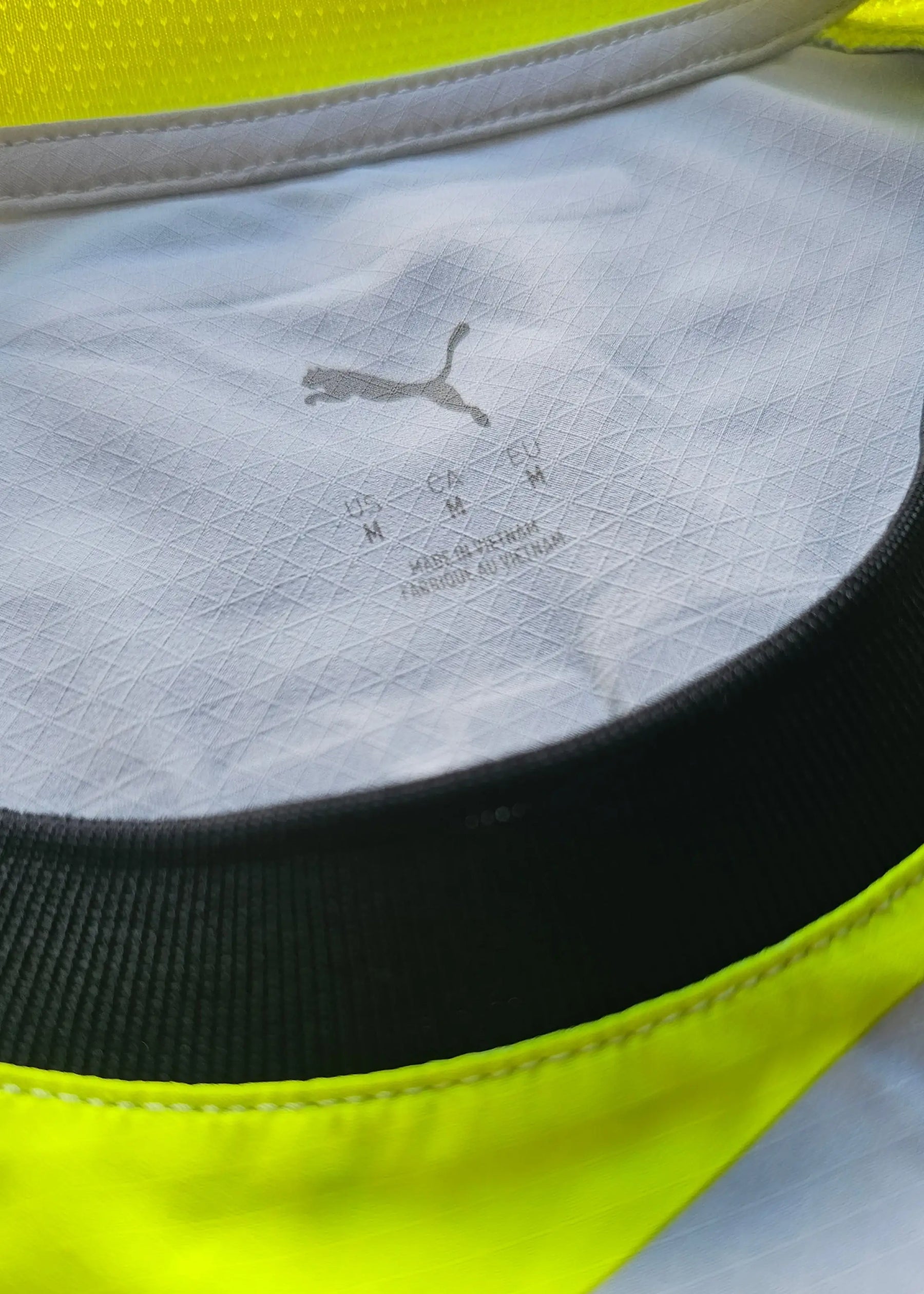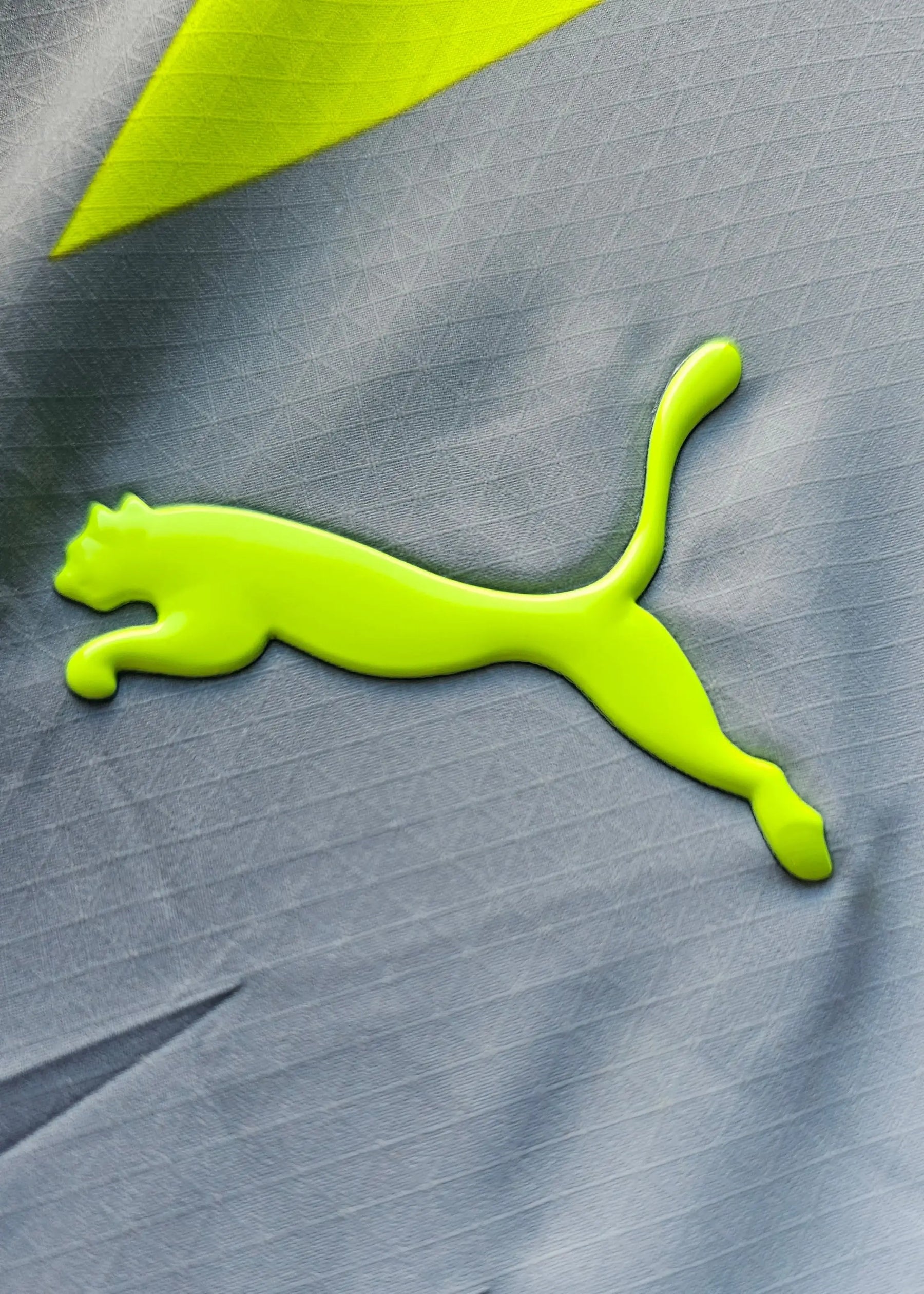 The Fanshop Match shirt is the in-season retail player-spec version that mirrors the on-pitch shirt, often carrying month and year on the inner label as production proof. It is manufactured to the same performance specifications as the shirt worn during competitive fixtures, without being prepared for match use. The 2025-26 Borussia Dortmund away Fanshop Match shirt is the player-spec retail version of the away kit worn by Albert across the club's Bundesliga away fixtures during the season. It is not a replica.