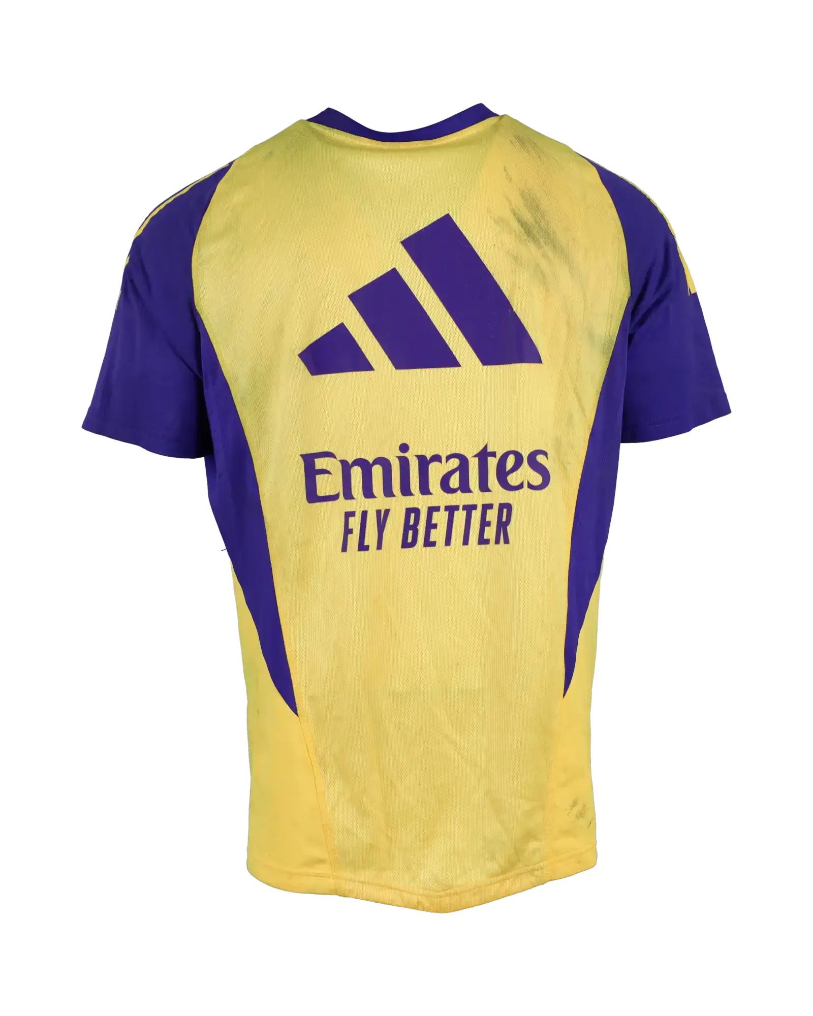 The 29 May 2024 final training session took place at Ciudad Real Madrid before the team departed for Wembley. The session included gym exercises, tactical work, small-sided games, and shots on goal as Real Madrid prepared for the Champions League Final against Borussia Dortmund on 1 June 2024. This player worn shirt represents the final preparation before Real Madrid's 15th European Cup triumph.
