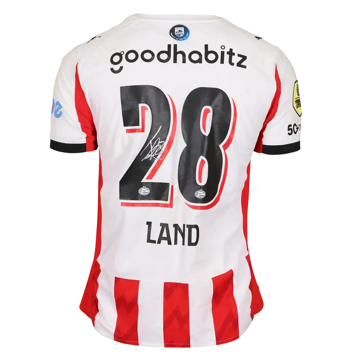 Tygo Land 28 PSV Signed Football Shirt 2025-26 | Match-Worn