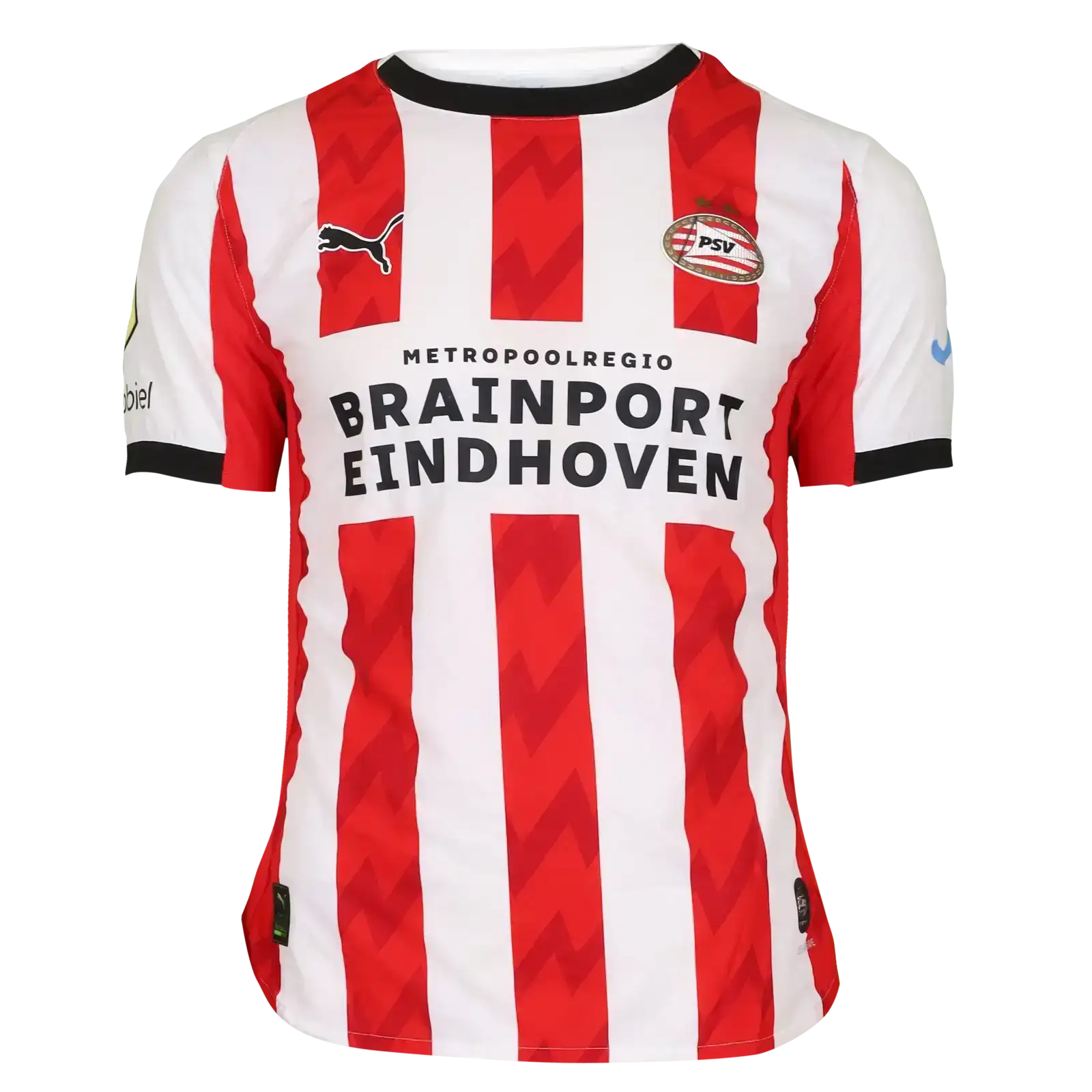 This shirt holds particular significance as a match-worn item from a young midfielder's development period at one of the Netherlands' most successful clubs. Land's achievements include the 2023-24 Eredivisie title with PSV, demonstrating his ability to contribute to championship-winning campaigns despite his young age. His technical ability, vision, and composure on the ball have drawn comparisons to previous PSV midfield talents who progressed through the club's academy system.