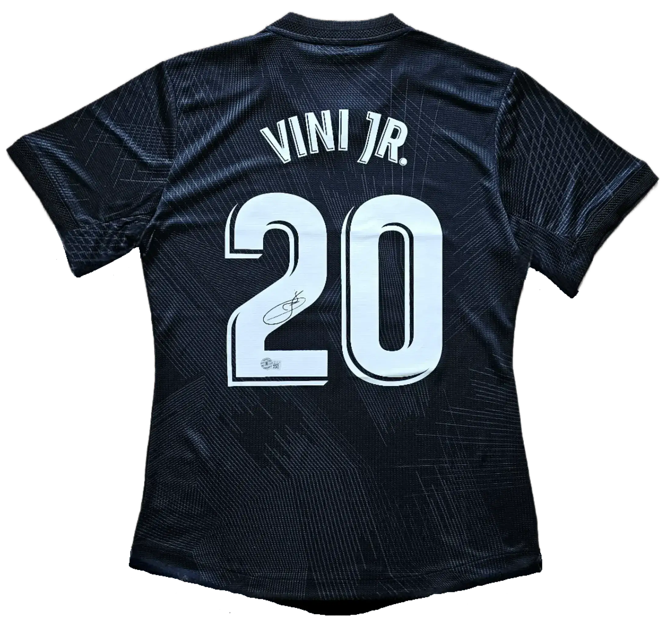 Don't miss the opportunity to own this iconic Real Madrid Y-3 120th Anniversary Jersey, signed by one of today’s most exciting players, Vinícius Júnior. It's a powerful statement piece for serious collectors and dedicated fans alike, encapsulating the spirit of Real Madrid and the essence of modern soccer.