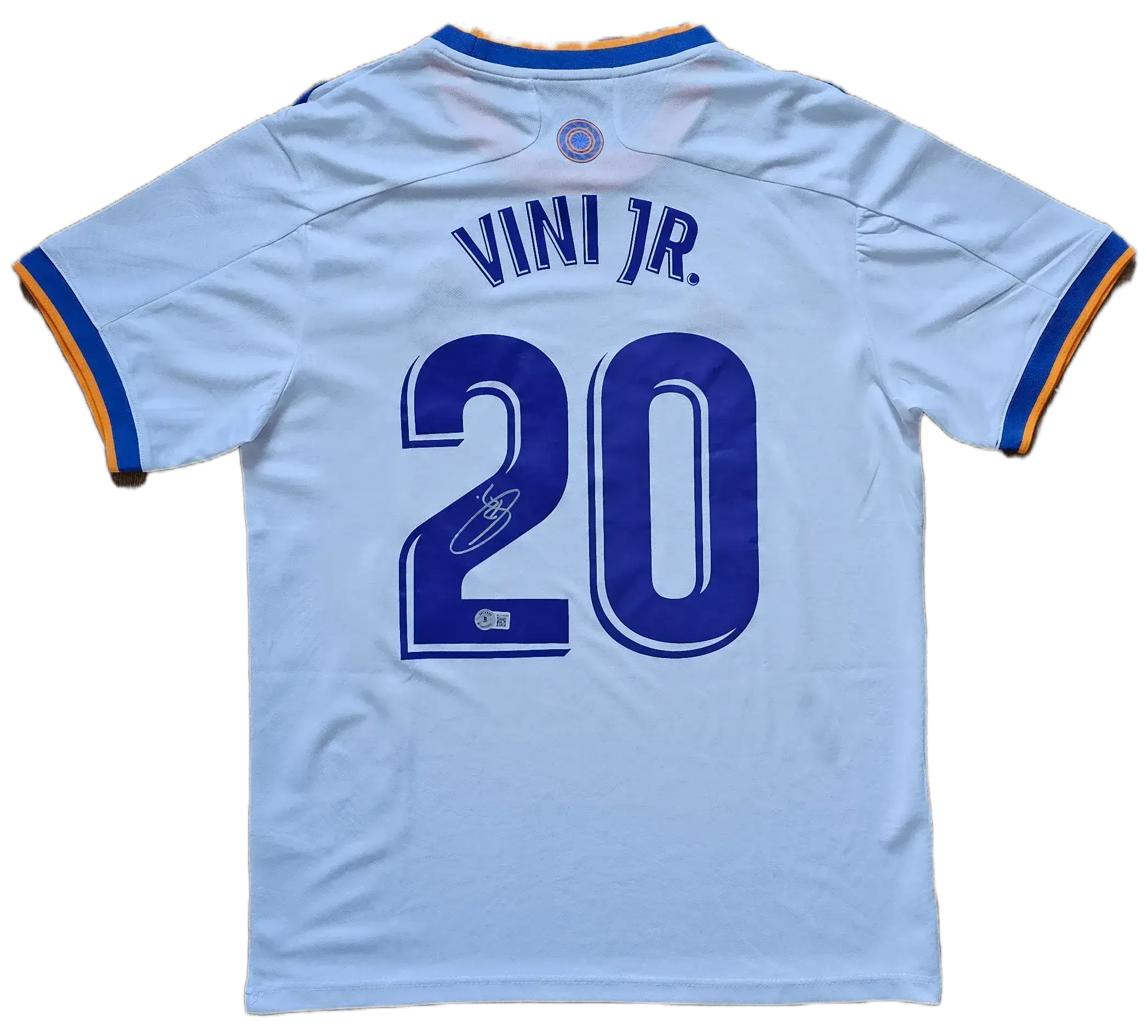 Every fiber of this shirt is steeped in the grandeur of the club's storied past, while also looking to the future—much like Vinicius Jr himself. Authenticated by Beckett, this signed shirt comes with the assurance that you are acquiring a genuine piece of football memorabilia, a snapshot of a player who is shaping the future narrative of Real Madrid.