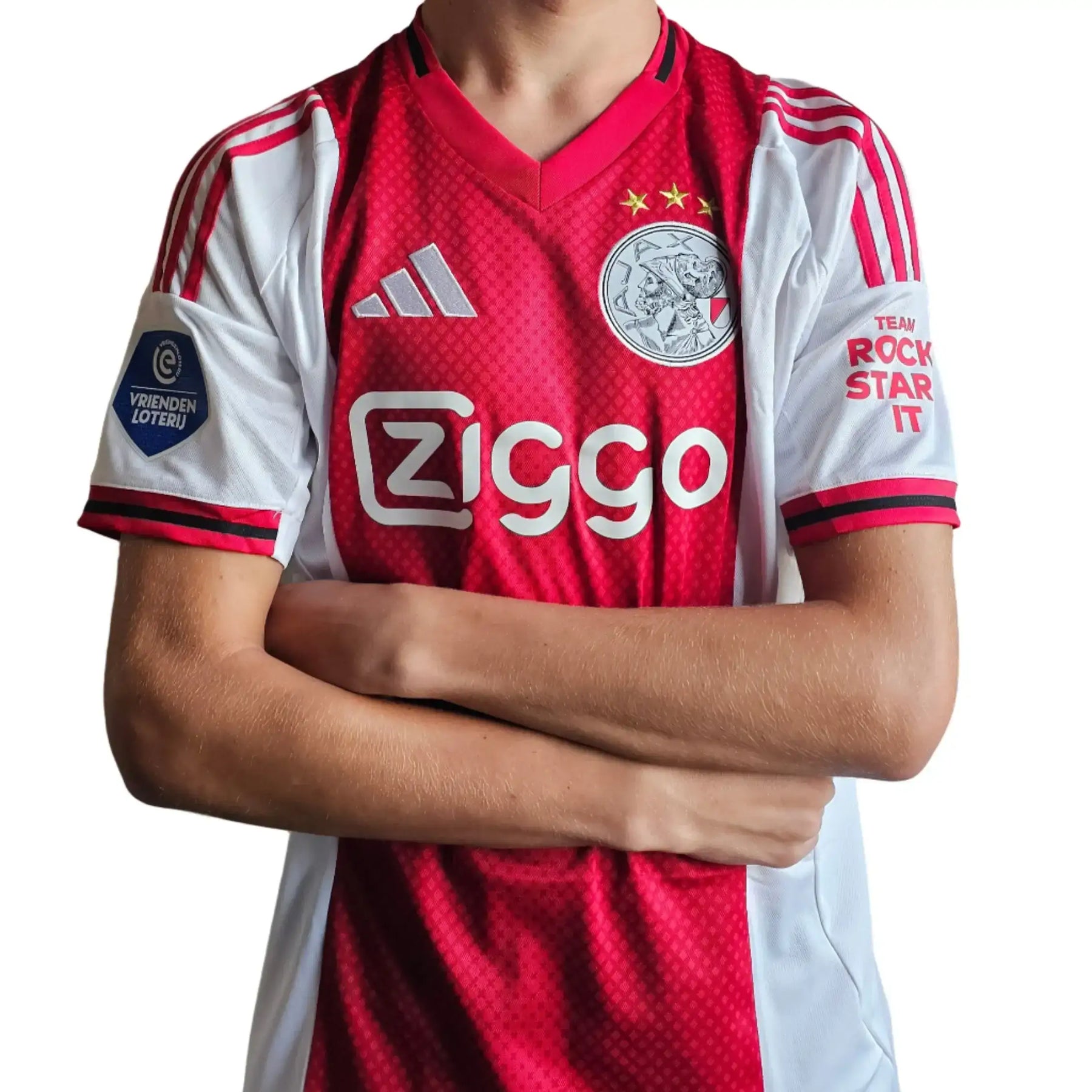 Officially signed Ajax 2025–26 home fanshop shirt, mint condition with COA and signing photos.